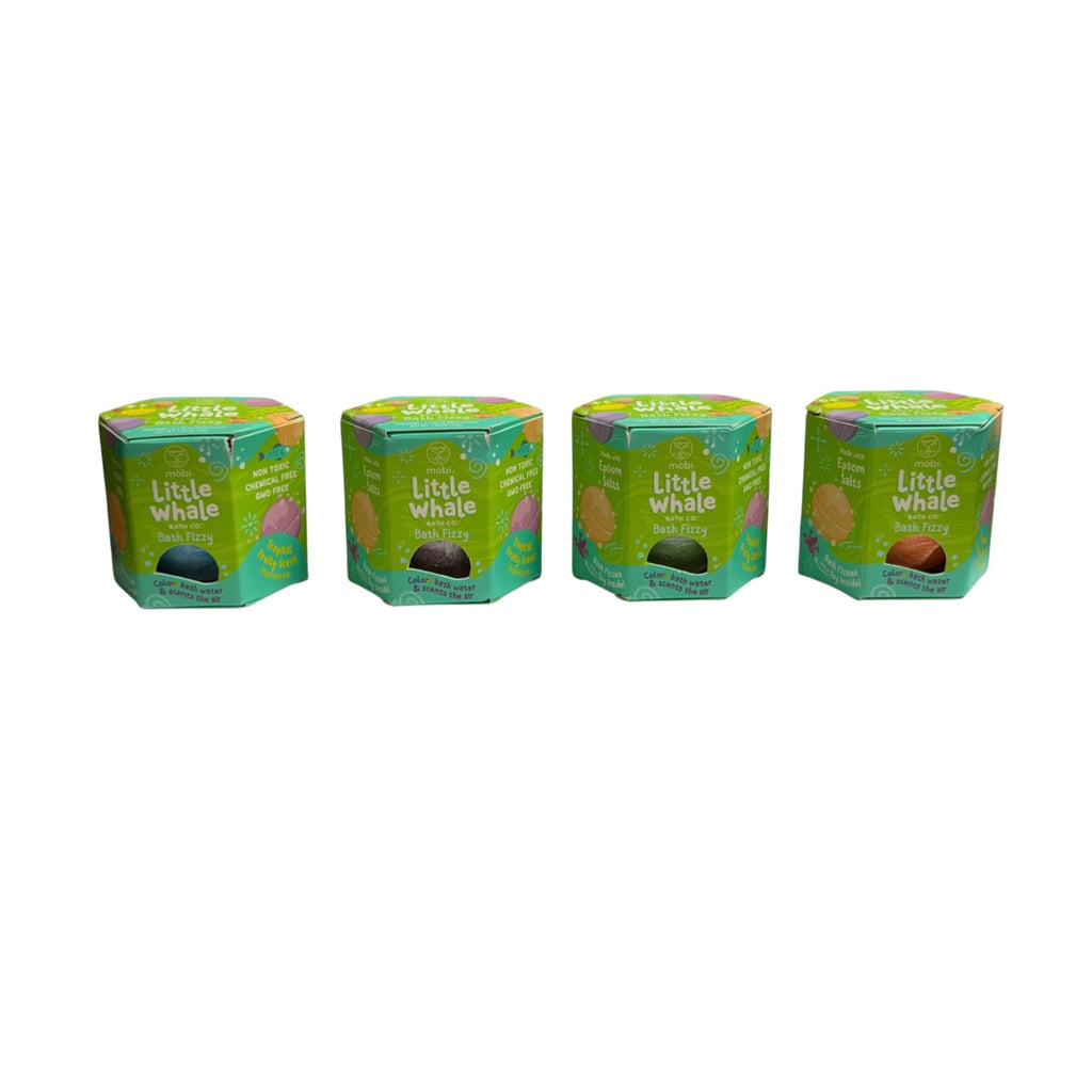Fill the bath, unwrap the bath fizzy and drop it in the tub! Watch as it fizzes and colors the bath water and your child’s imagination! Soon, a cute, little sponge toy will appear! Collect them all! While other bubbling and fizzing bath products can dry out and irritate skin, Little Whale Bath Fizzies don’t! Little Whale bath products are skin-friendly and safe.