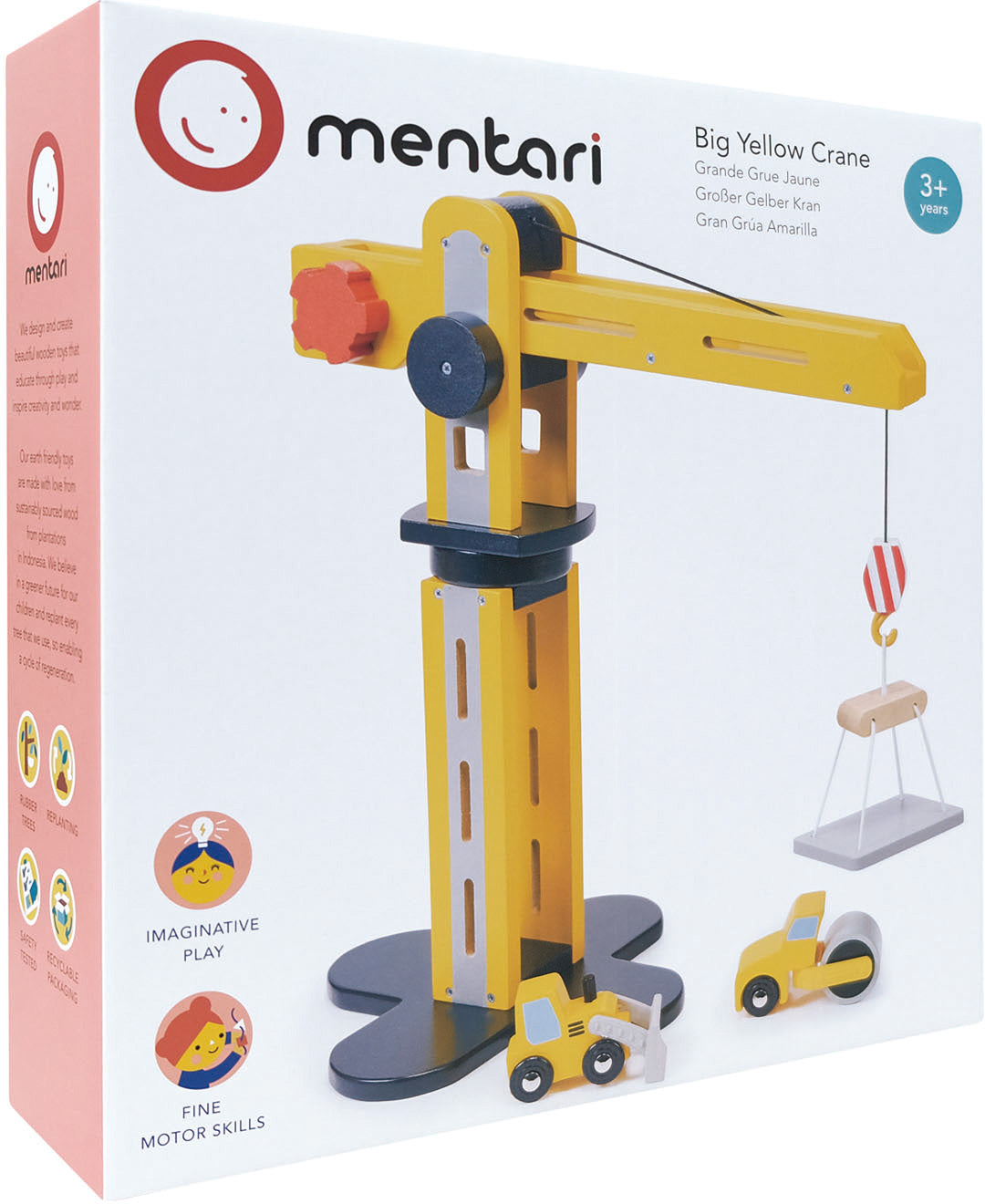 Get ready for high-flying fun with our Big Yellow Crane! This wooden toy crane isn't just a delight to look at; it's a hub of activity. The arm's forward and backward movement, the hook's vertical journey, and the turntable's full rotation bring the thrill of 3D space into little hands. It's a sensory and tactile playground, perfect for budding engineers!