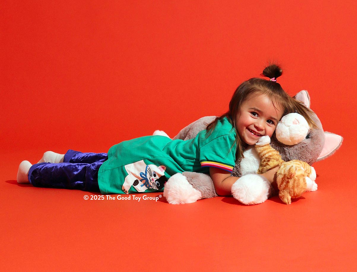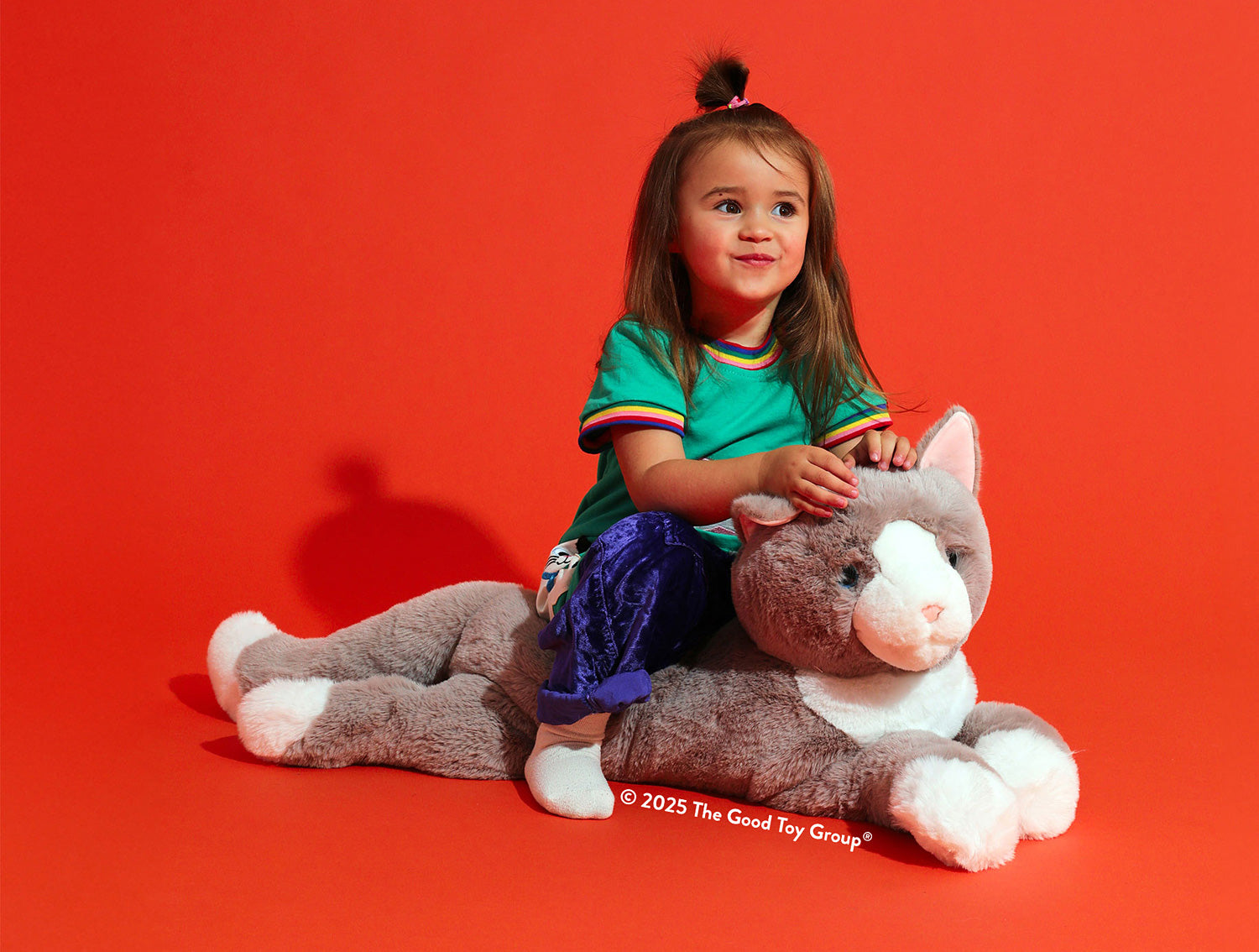 Big kitties come with big cattitute and Boots our Jumbo Cat stuffed animal comes with the most cattitude of all! Stretching 30" in length, Boots offers a LOT of cuddly kitty to wrap your arms around! Silky soft plush materials offer a soothing texture to snuggle up to, while high quality interior polyester fill maintains our giant feline's pillowy form. Boots features attractive white markings on her face, chest, and paws. Pink fabric lines her ears and complements her sculpted, pink nose. Look into her bright blue eyes and you'll see a lively, sweet-faced personality staring back at you. A true queen when it comes to lazy lounging, Boots' weighted paws lend a lovable floppiness that will have you coming back for snuggles again and again. Adopt Boots for yourself or surprise a fellow feline fan, this generously sized plush exudes big kitty energy!