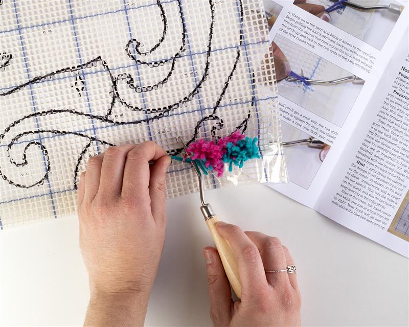 Discover the classic craft of latch hooking with this colorful butterfly design, crafted from 100% wool yarn. Once completed, your vibrant 12" square rug can be displayed on the wall as a piece of art or used as a stunning panel on a tote bag or pillow for a unique, handcrafted touch.