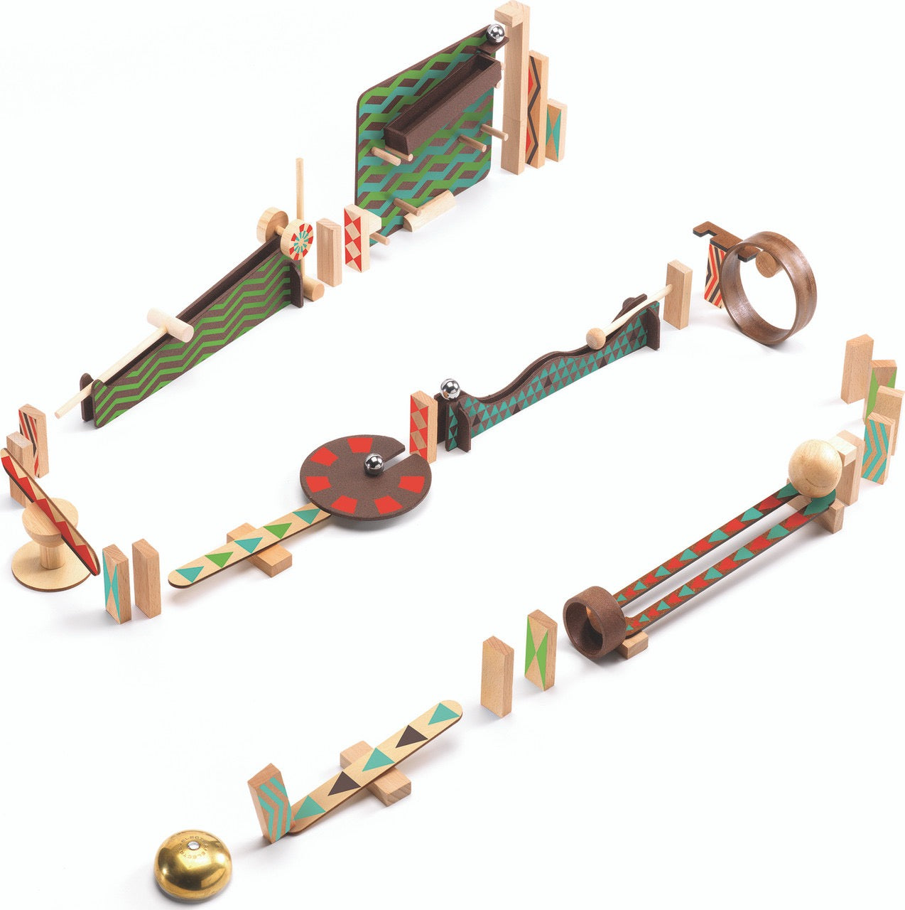 Djeco presents Zig & Go, a wooden building game of chain reactions requiring careful thinking. Children copy the 3 designs in the instructions booklet to build courses, or make up their own - the possibilities are endless! This game is designed for ages 7