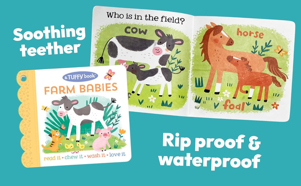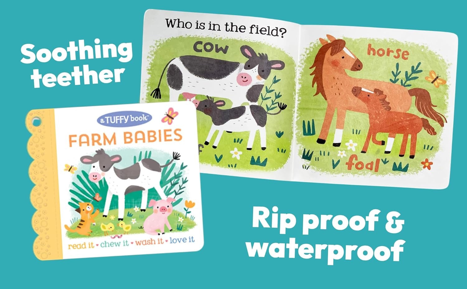 Say hello to the cutest crew on the farm!Farm Babiesis a chewable book that’s more than just a story —it’s a durable, chew-safe toy designed especially for little hands and teething mouths. From cows and calves in the pasture to ducks and ducklings at the pond, little ones will love meeting farm animals and learning their baby names along the way. Made with soft, safety-sewn, BPA-free material, this indestructible book is built to be chewed, bent, hugged, and loved—without ever ripping or tearing. Read-It, Chew-It, Wash-It, and Love-It! That’s the Tuffy way.