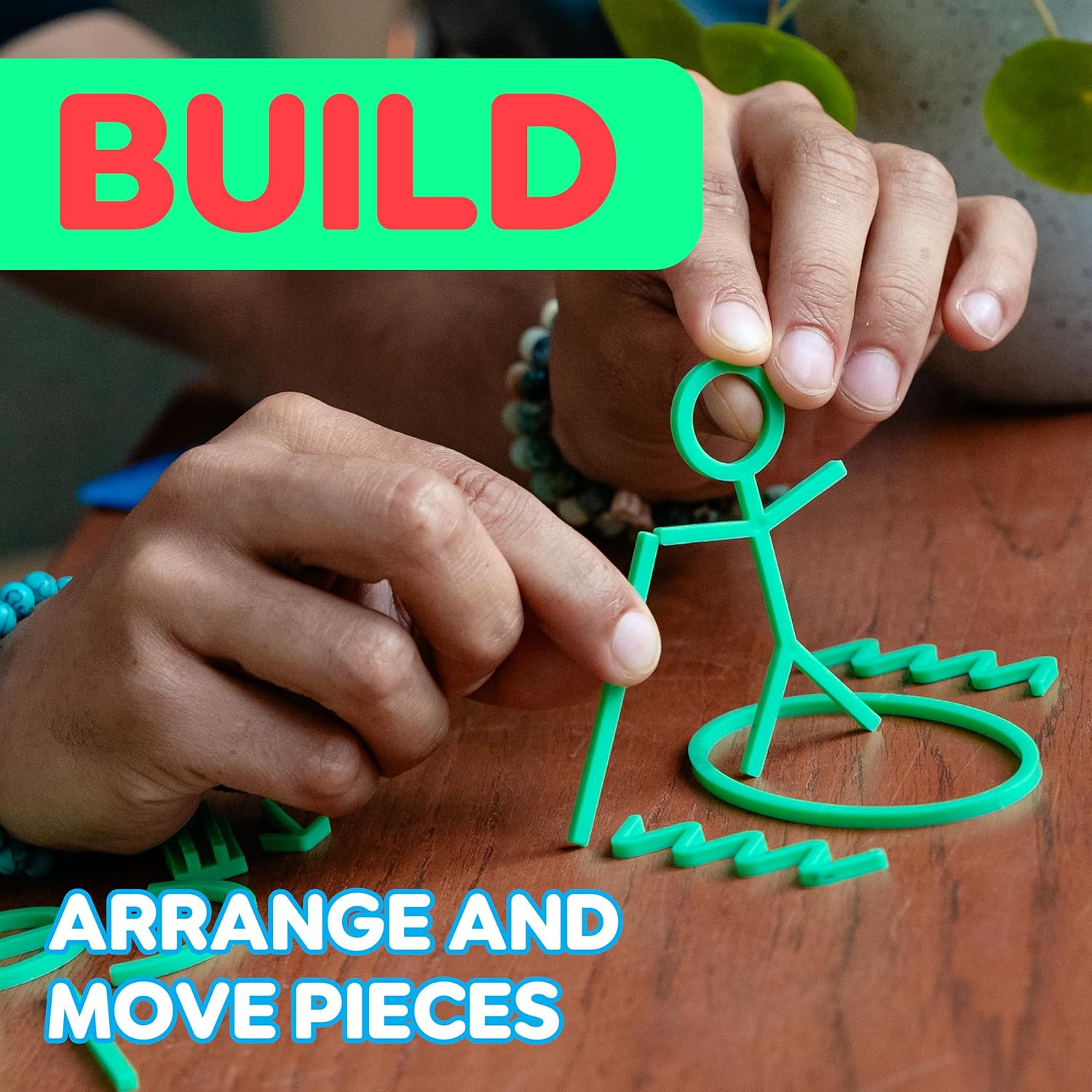 • Challenges creativity to build words with 40 unique plastic pieces - No drawing or acting allowed!