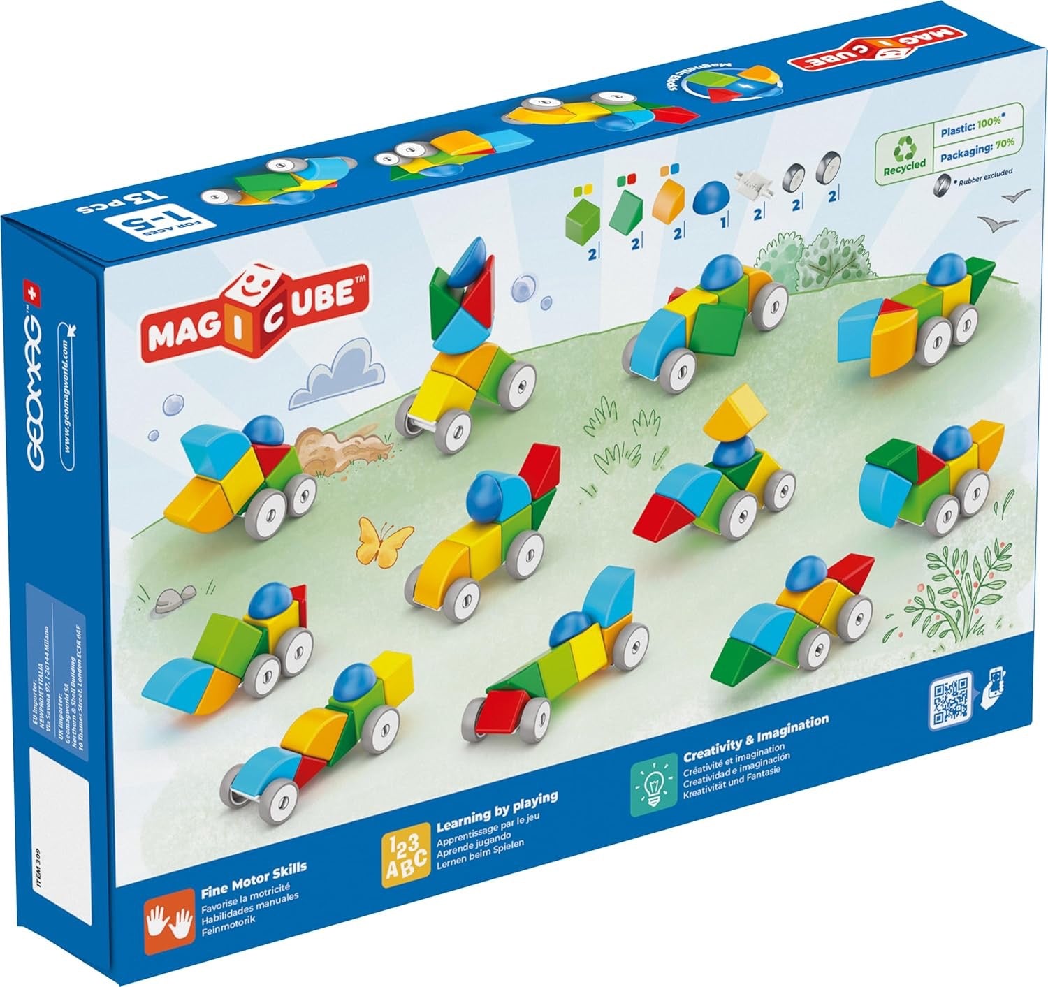• Magnetic construction – 13-piece magnetic construction set that can be easily plugged together, perfect for small hands to create different vehicle designs and configurations