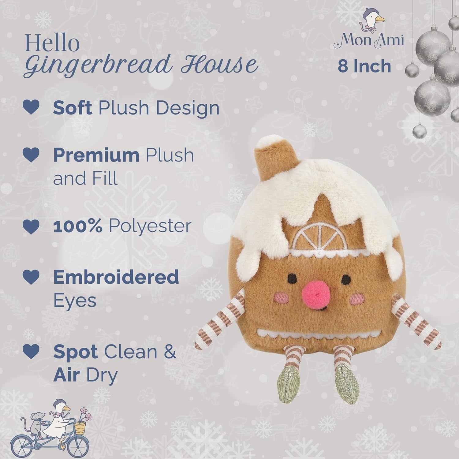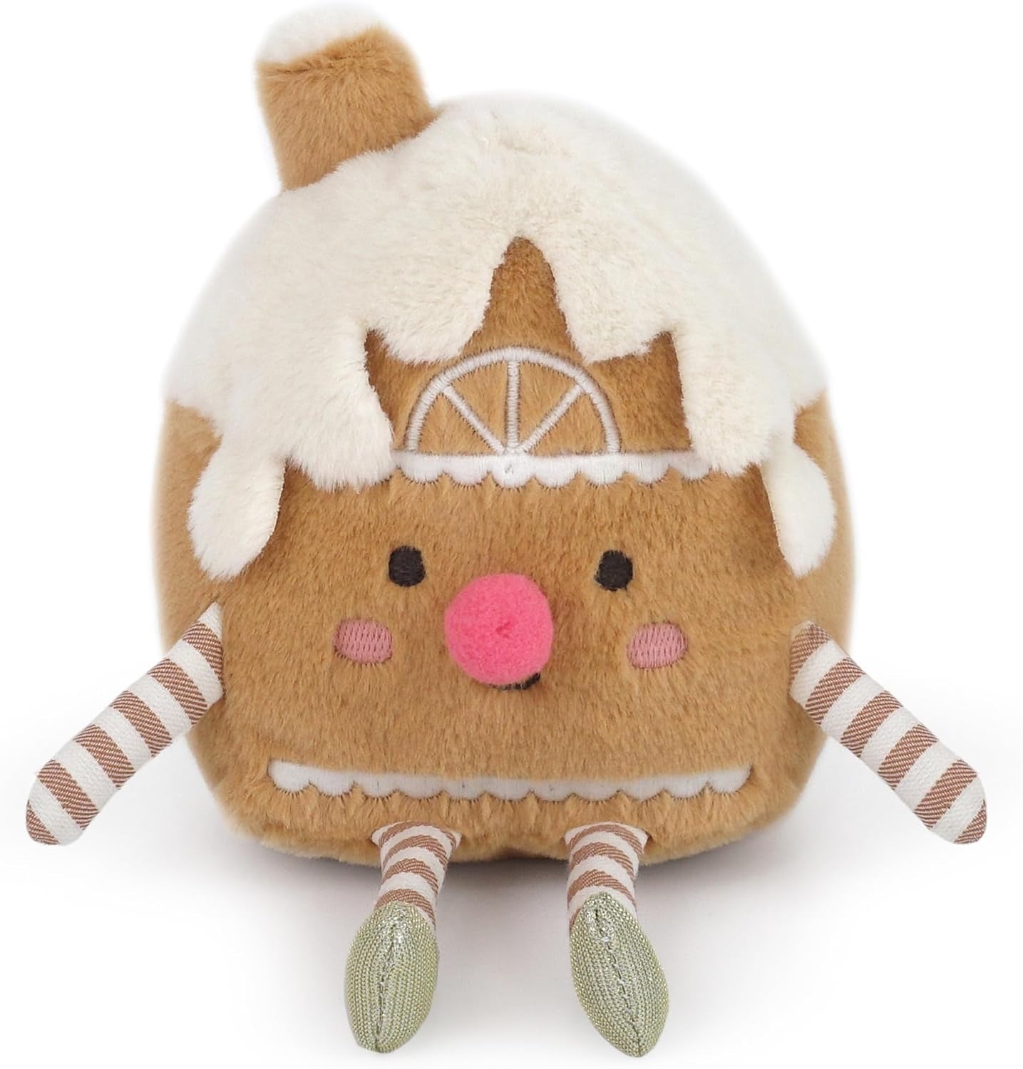 • FESTIVE GINGERBREAD HOUSE PLUSH TOY: Celebrate the season with a cozy companion! This gingerbread house plush toy features a fluffy faux frosting roof, citrus slice detail, and a pompom nose. Its playful striped limbs and sweet smile bring sugar-and-spice vibes to playrooms, holiday shelves, and festive corners of your home.
