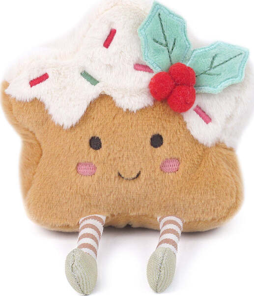 Our Holiday Frosted Star Cookie is here, sugar-free but full of sweetness! This Star Cookie plush is the ultimate holiday treat that won't crumble.With its fluffy faux fur 'frosting' topped with sprinkles, and an adorable holly berry, it's as festive as can be. Rosy cheeks and a happy smile bring instant holiday cheer, while its dangling striped legs add a whimsical touch. Perfect for decorating, cuddling, or a caring gift for the star in your life this Holiday season.