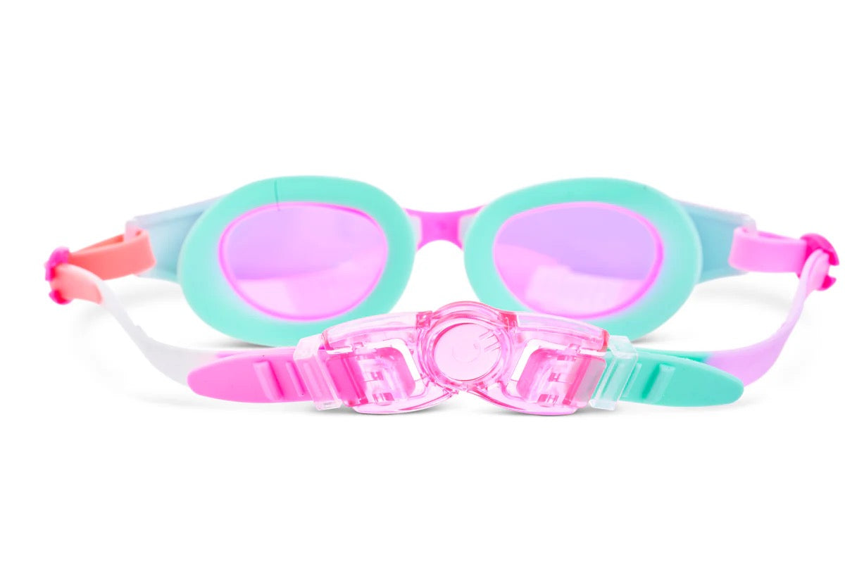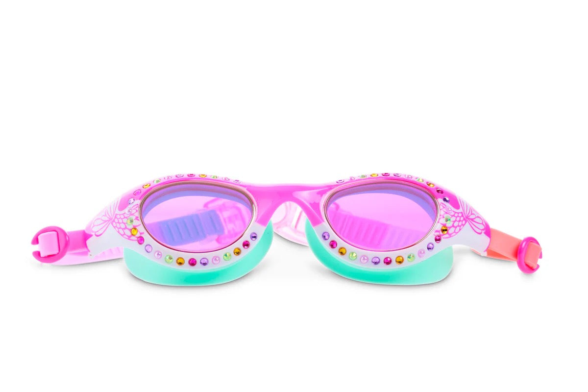 Neptune’s Pearl in Magenta Mermaid is made for kids ages 6 and up who bring bold energy to the pool. With a hot pink oval frame, seafoam green accents, and a wave of rhinestone shimmer, this goggle channels confidence with every splash. A mermaid tail print adds a magical finishing touch.
