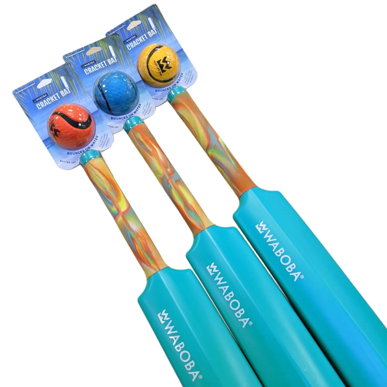 A new way to play ball! Take baseball, cricket, or homerun derby games to the beach, pool, or lake with Water Cracket! The bat set comes with a Waboba Zag ball, which skips on water. Simply bounce the Zag ball on the water to pitch it to batters, and put a spin on classic games!