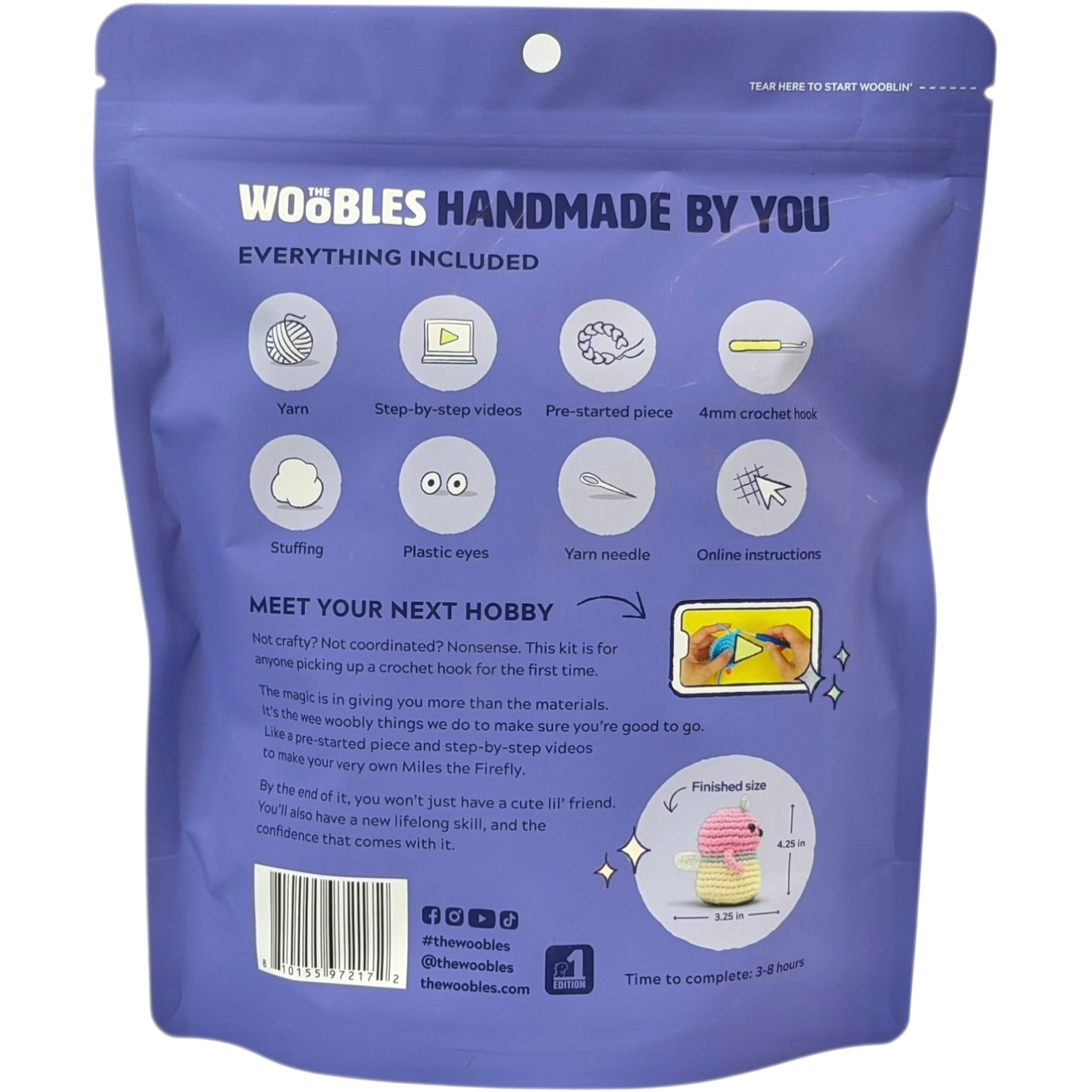 Even better, his Beginner-level skills are simple enough for Wooblers of any level, especially with our Easy Peasy Yarn™ to help you avoid snarls and snags. Plus with our step-by-step videos to guide you along, even wooblin’ newbies will be able to fly right on through and really light things up. So grab your hook and get ready for Miles of smiles as you bring this glow-mazing lil’ guy to life!