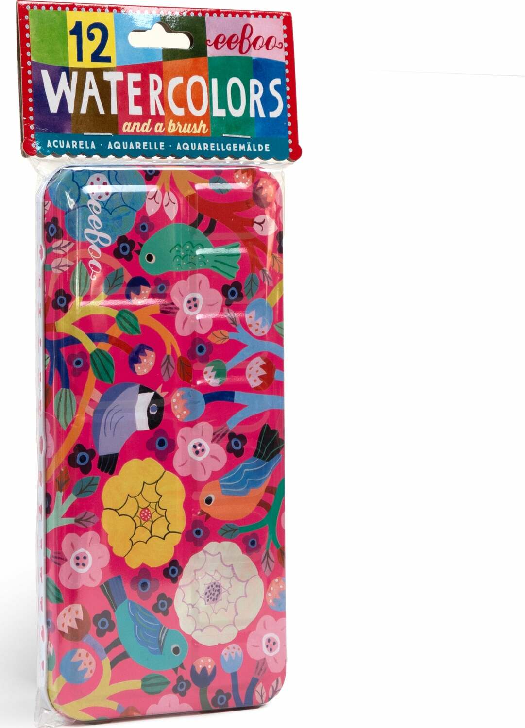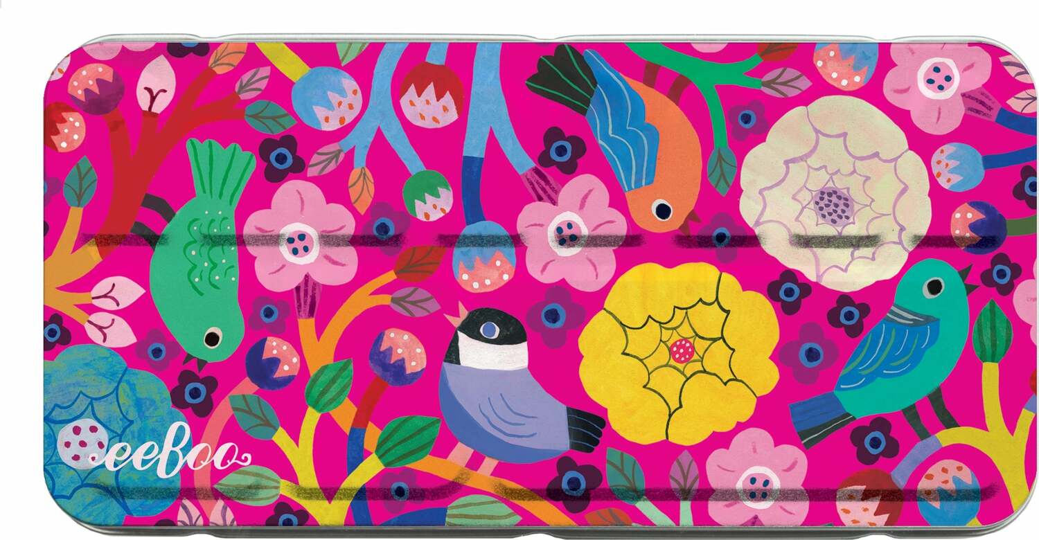 High-quality watercolors and a brush in a beautiful tin box featuring bright and delightful bird artwork by Monika Forsberg. A perfect companion to eeBoo's watercolor pads. Develop skills and build confidence while exploring color, media, and self-expression.