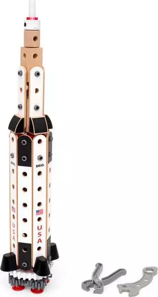 Build a space icon with the 34607 Apollo Saturn V from BRIO Builder. Standing 60cm tall and made up of 91 pieces, this NASA-inspired rocket brings space exploration to life for little engineers. The rocket divides into 3 rocket stages – stage 1 with the main boosters, stage 2 and stage 3 including a flashing nose cone. Rebuild it into an air shuttle, aircraft or use the parts for endless creative play. As with all BRIO Builder construction sets, this toy encourages open-ended, imaginative play – perfect for budding engineers and space explorers.
