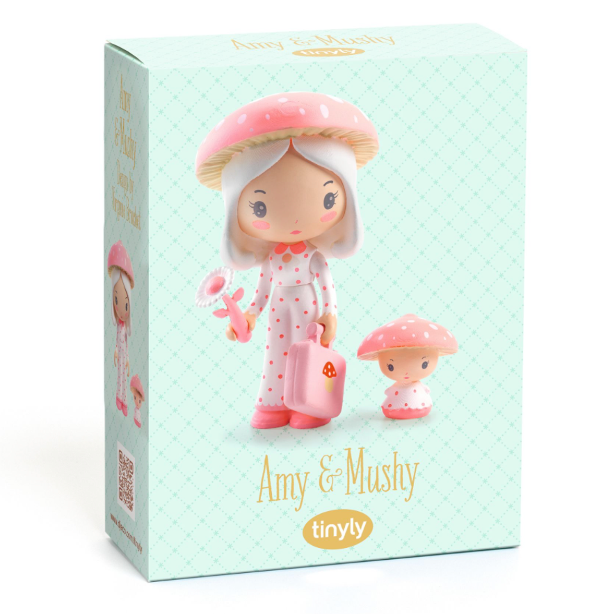 With their fluorescent mushroom hats, Amy and her adorable companion, Mushy, are easy to spot in the woods on their long autumn walks. Tinyly: a magical world of pretty, soft-coloured figurines with delicate features who can be displayed, collected or used as characters in their very own stories and fabulous adventures!
