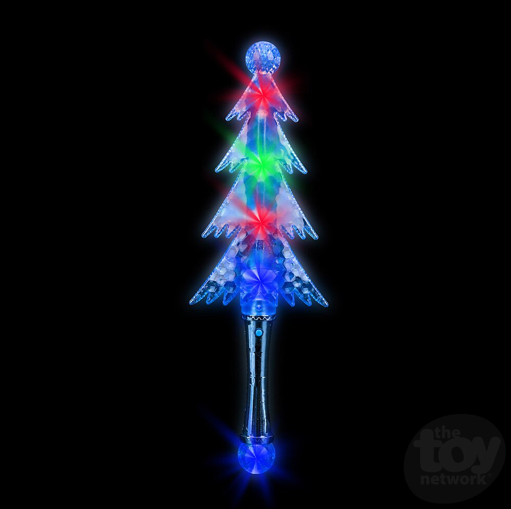 This 15" Light-Up Christmas Tree Wand is a multicolor wand with holiday magic at your fingertips. (4) AG13 batteries included and replaceable. Each piece comes in a poly bag. Sold by the dozen.