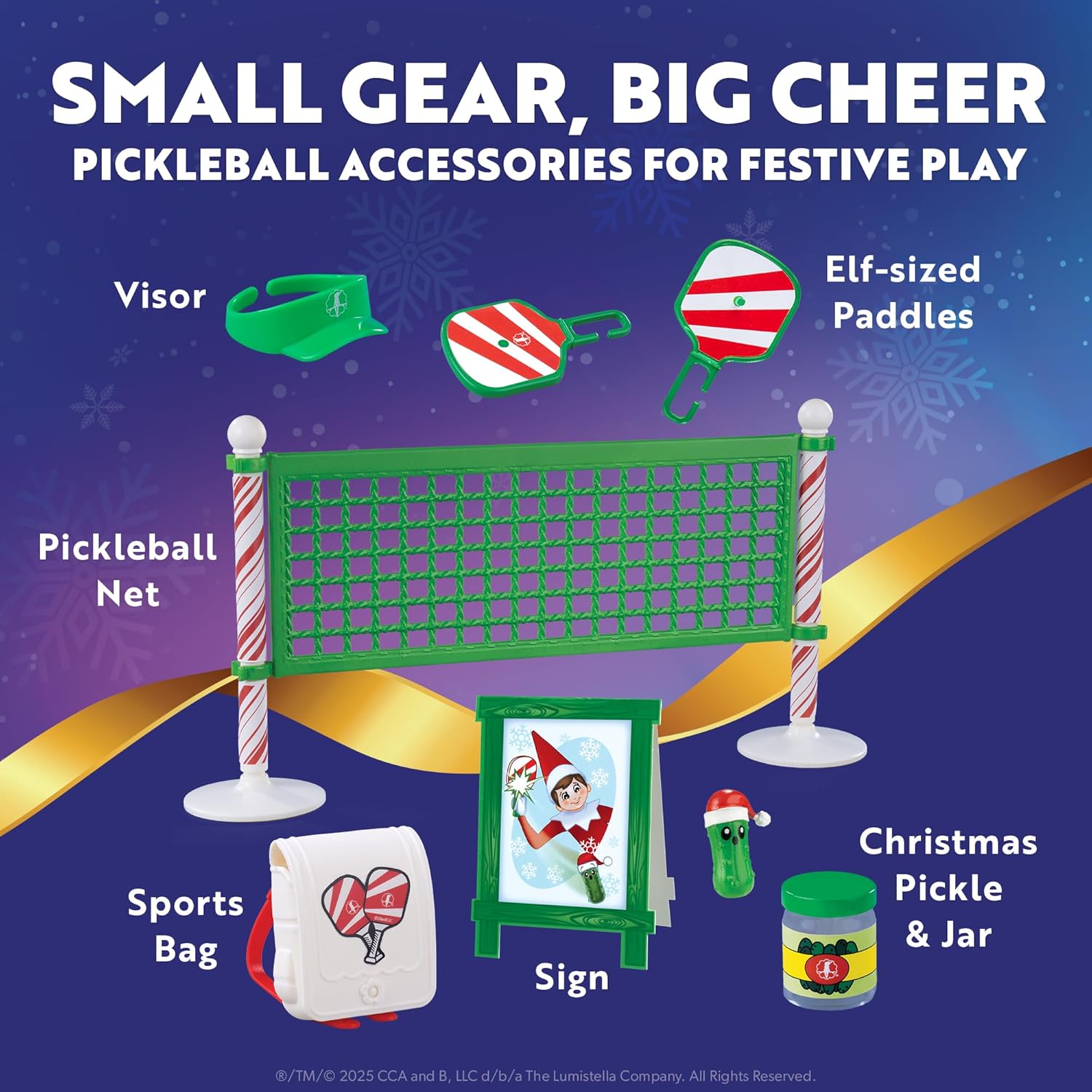• Elf-Size Sports Gear and Accessories: The Elf on the Shelf props kit includes a miniature pickleball net, paddle, sign, match-ready visor, and pack–perfectly sized for your pickleball pro to showcase their elf-letic prowess. Plus, no pickleball game is complete without pickles. This set also comes with a tiny pickle jar and pickle prop for some extra fun elf arrival ideas.