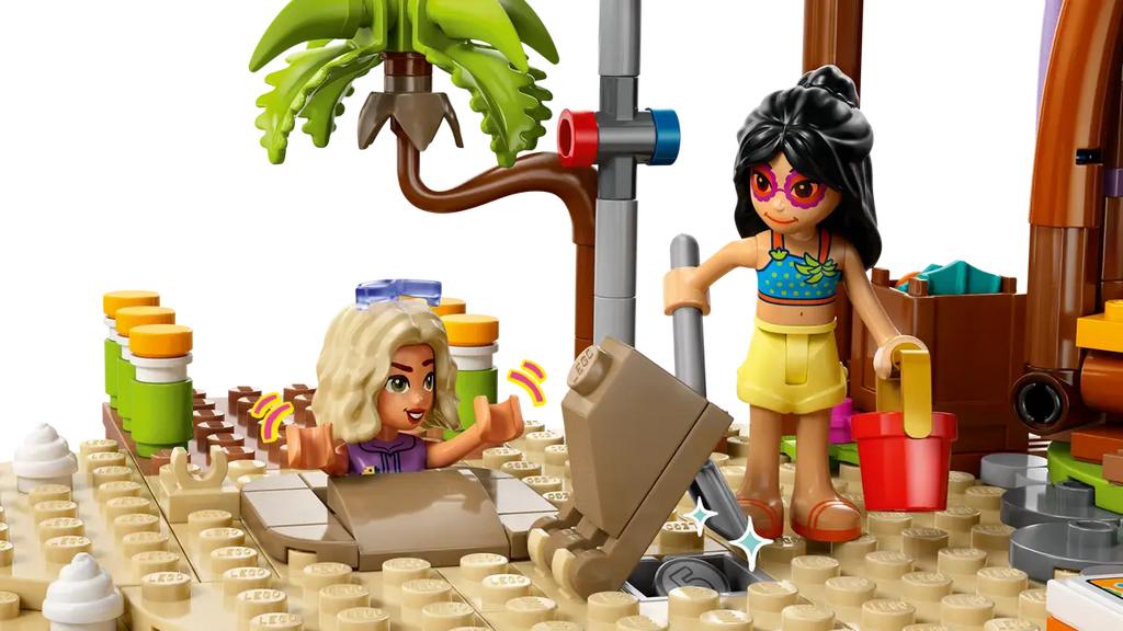 - A creative toy with beach resort accessories – This LEGO® set comes with lots of accessories, including drinks, ice cream cones, surfboards, helmets, a shovel, camera, suitcase and a beach wheelchair