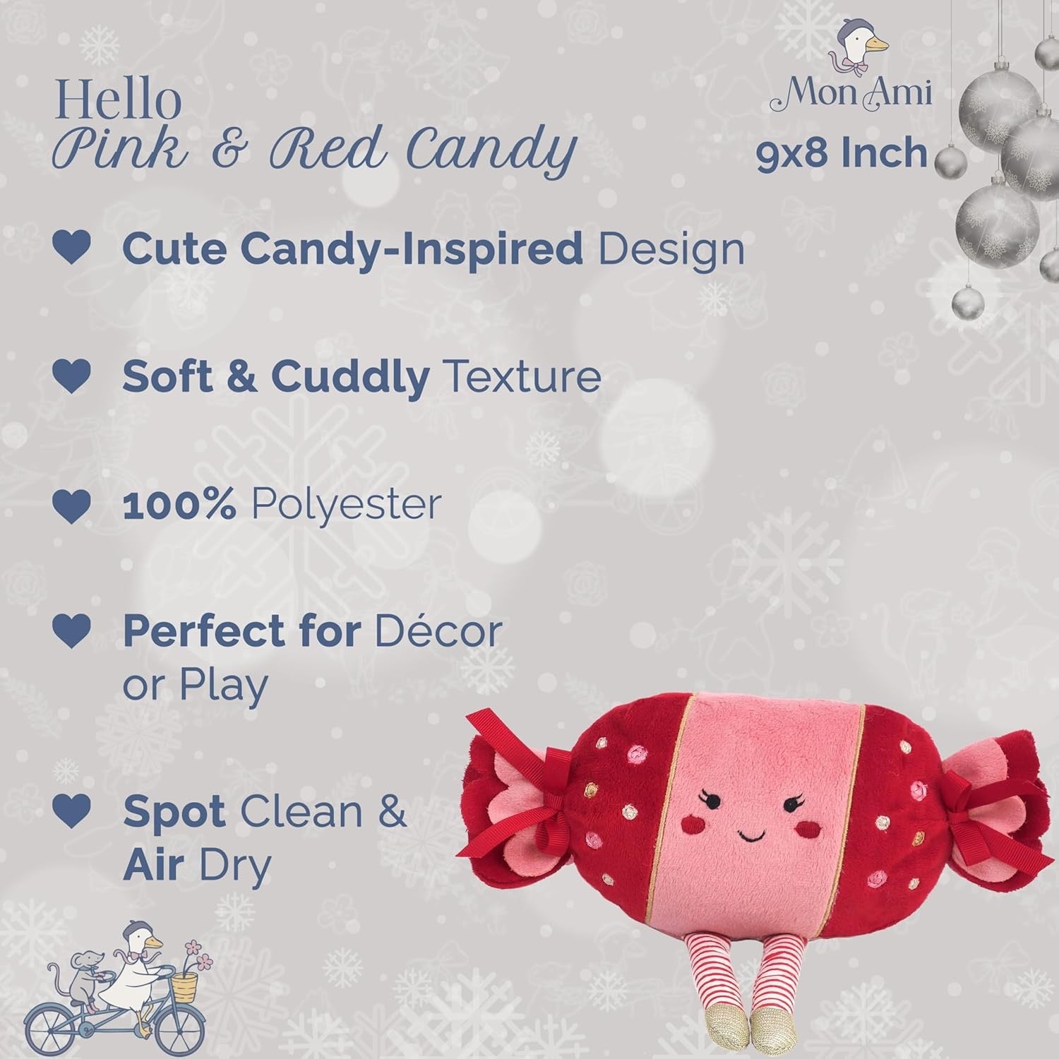 • SOFT PLUSH CANDY TOY – Sweet, cuddly and festive, this MON AMI Candy Plush Toy features a cheerful embroidered face, bow tied candy wrappers and candy cane striped legs. Perfect for imaginative play and holiday décor, it adds joyful charm to kids’ rooms, Christmas displays, photo setups and cozy seasonal corners.