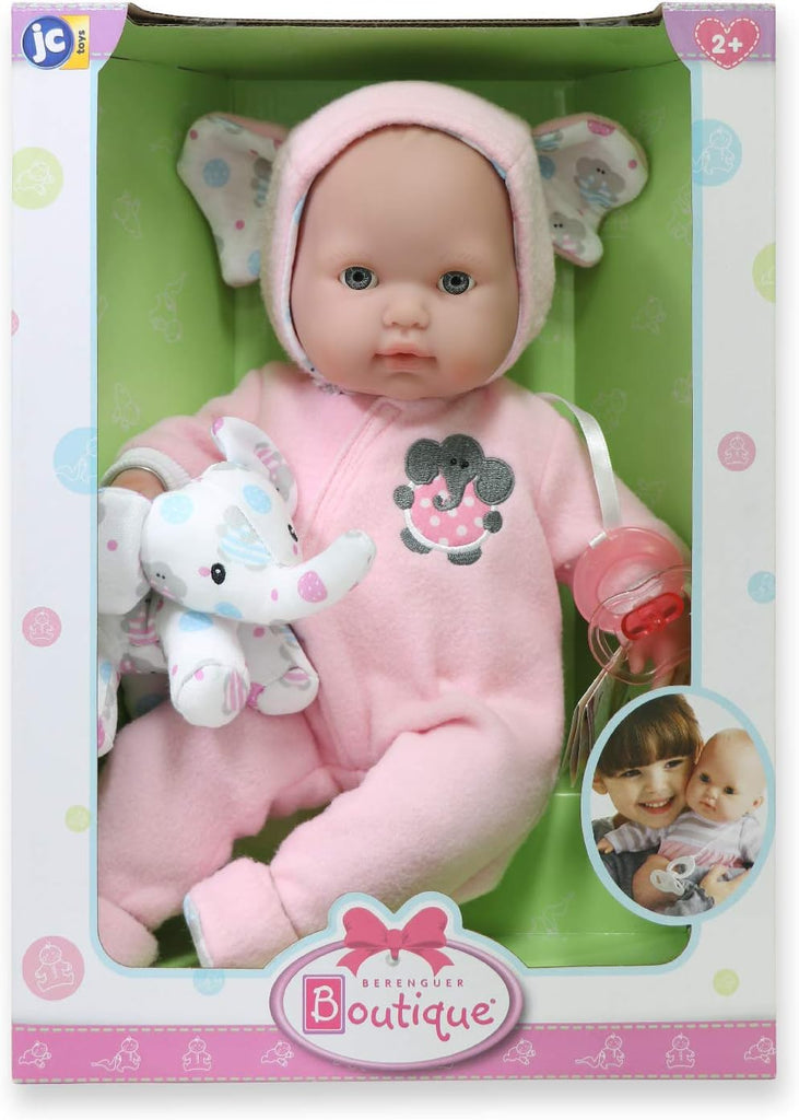 Berenguer Boutique Pink Soft Body 15" Baby Doll Open/Close Eyes w/Play Elephant
