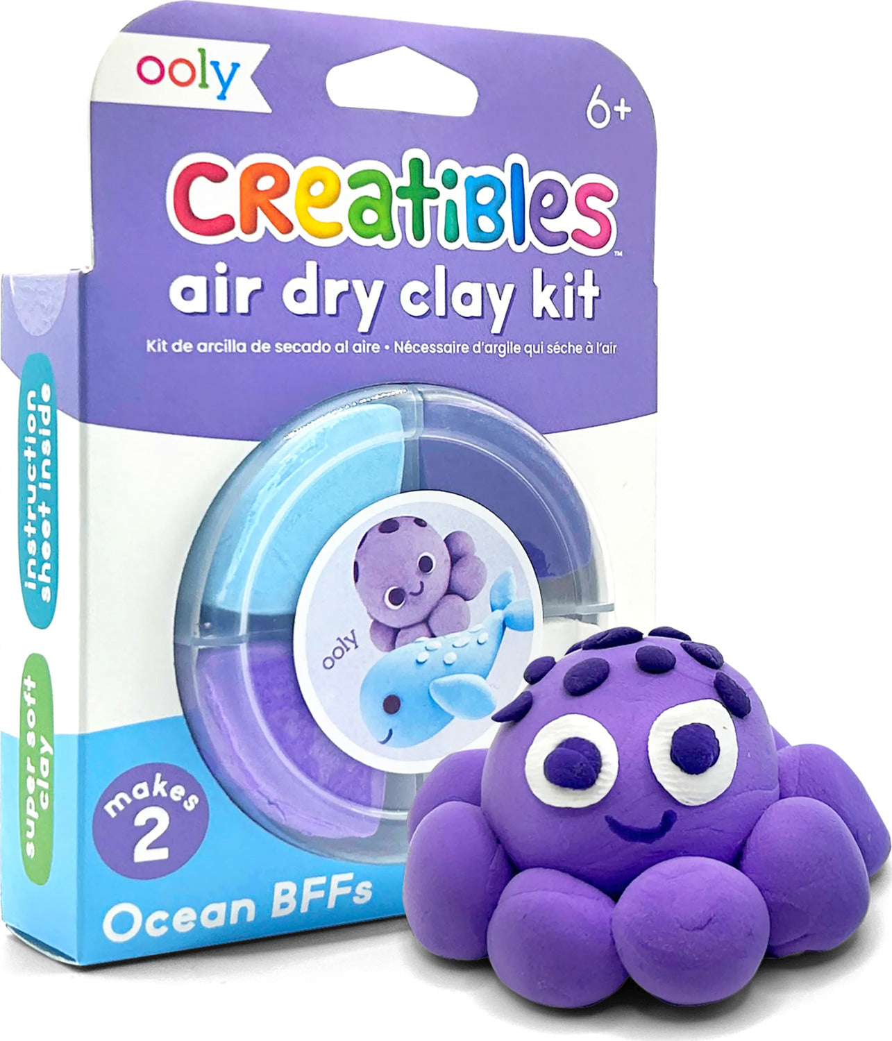 Oh, the creatibilities of learning how to sculpt! This air dry clay is a must-have set for those kiddos who enjoy tactile play! Everything they need to create two cutie-pie characters is in this mini clay kit, including four different colors of super soft, non-toxic air dry clay, instructions for molding a silly octopus and a wonderful whale, as well as a reusable tub. Watch as your child creates these adorable buddies of the sea!