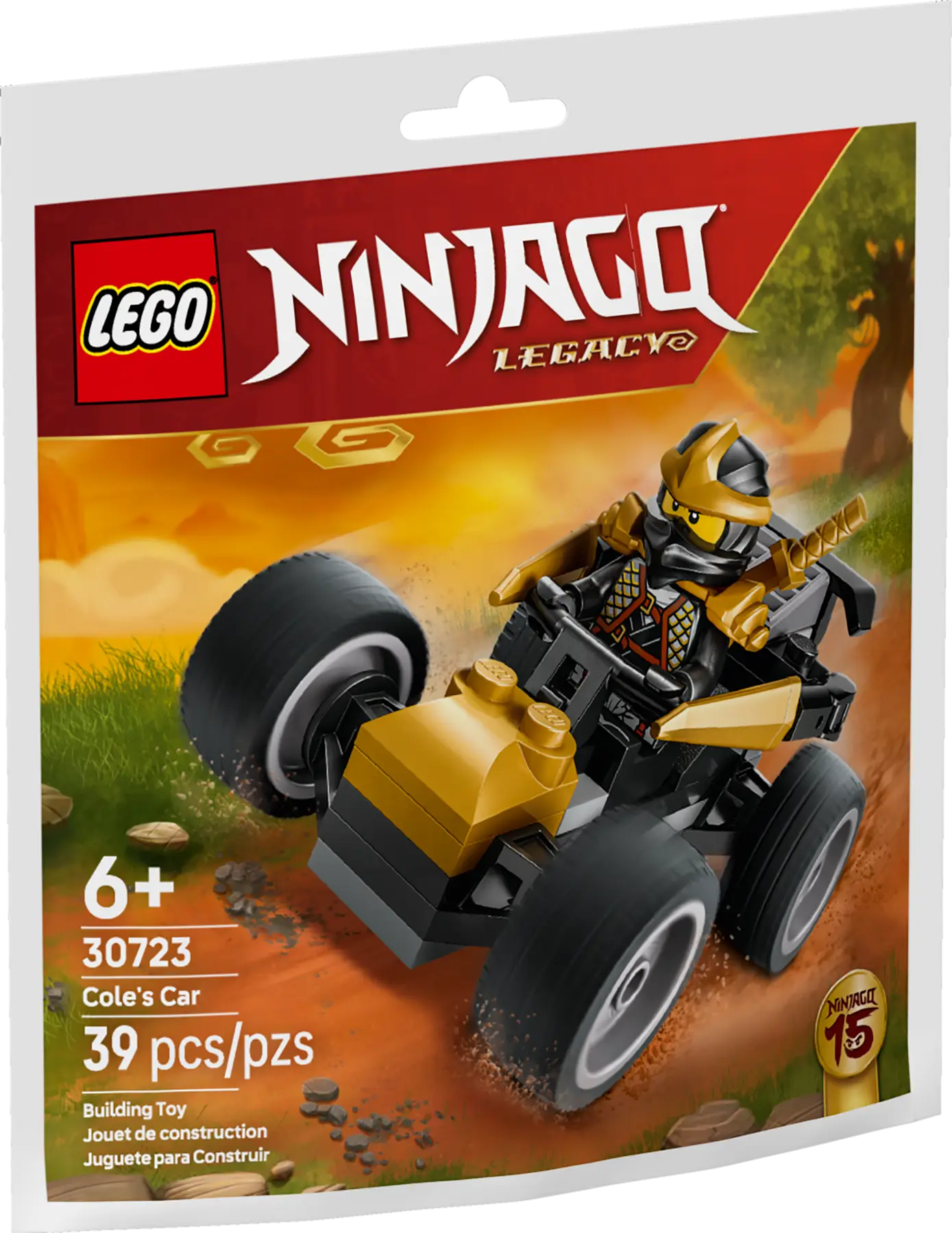 Kids ages 6 and up can play out driving action with a mini version of a supercool ninja car driven by a Cole minifigure armed with a golden sword.