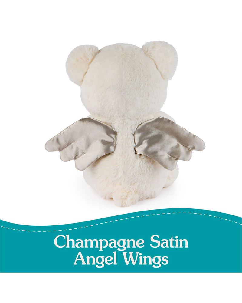 Celebrate every spiritual journey with GUND! This adorable bear brings the cuddles and comfort to prayer time with a gentle hug and pleasant chime sounds with every squeeze. Its luxuriously soft, cream-colored plush is accented by shiny champagne satin paw pad accents, which provide babies with the added tactile sensory experience they crave during playtime.