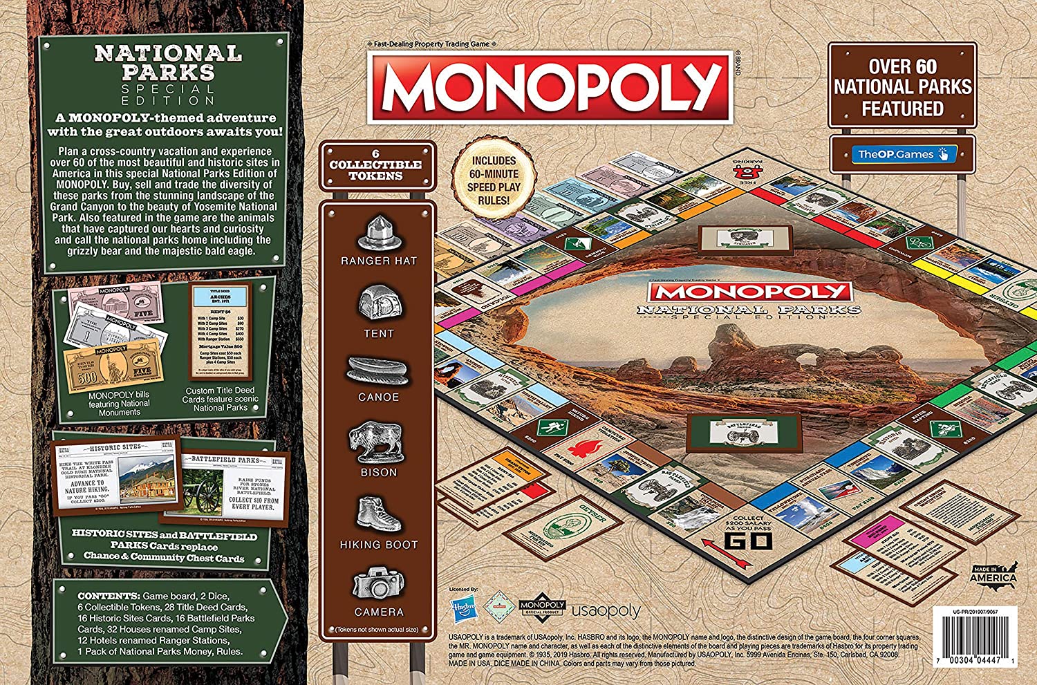 • Includes: 1 Game Board, 6 Collectible Tokens, 28 Title Deed Cards, 16 Chance Cards renamed Battlefield Parks Cards, 16 Community Chest Cards renamed Historic Site Cards, Custom Monopoly Money, 32 Houses, 12 Hotels, 2 Dice, Rules