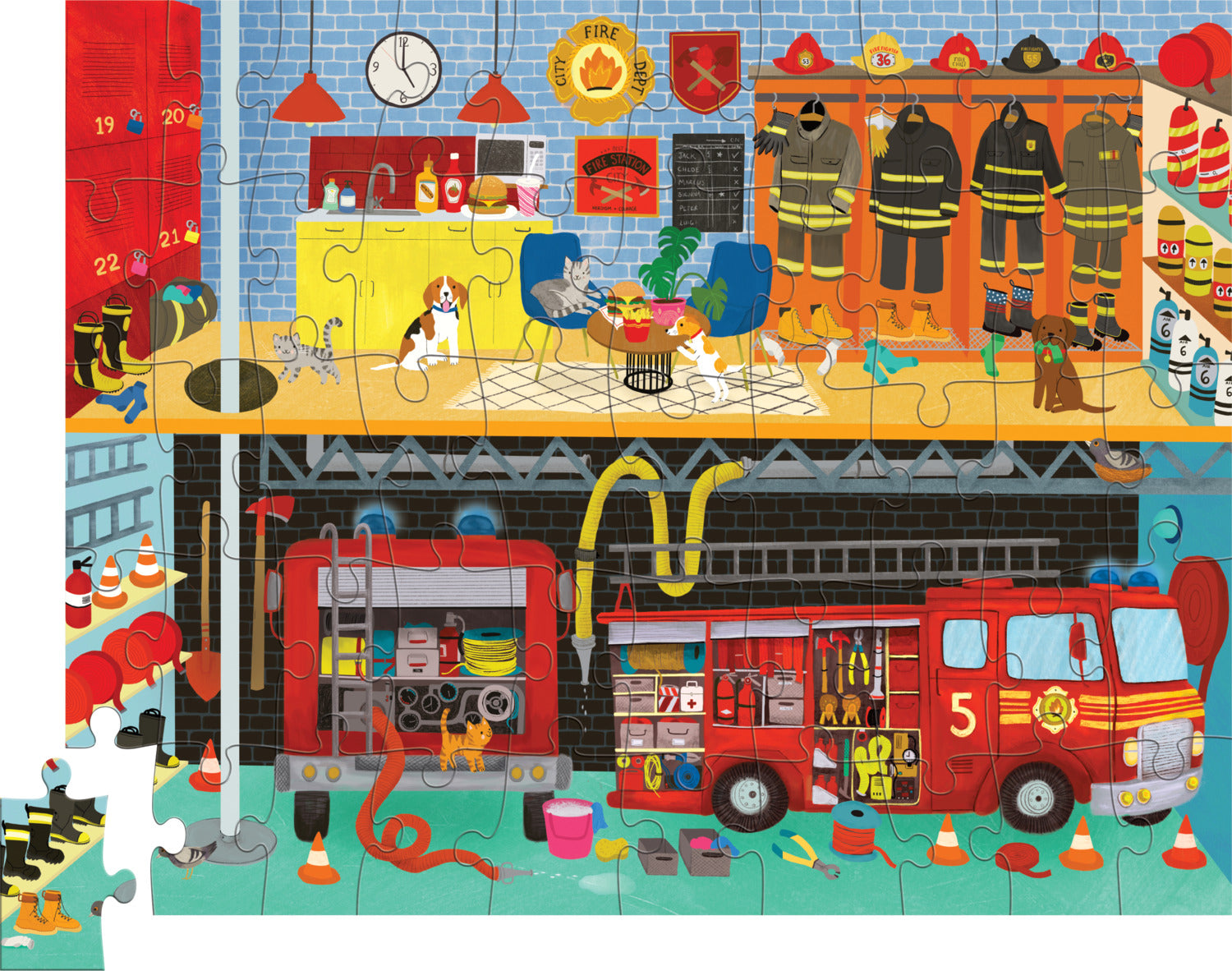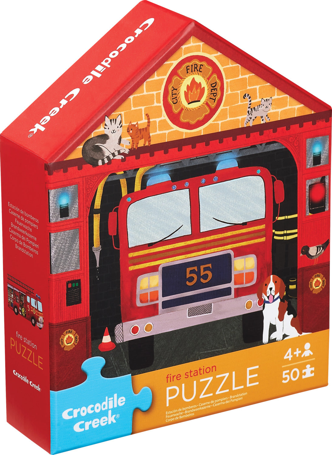 Save the Day! Our 50-piece Fire House puzzle in a house-shaped box will delight any little hero who dreams of racing to the rescue. Featuring bold colors and a whimsically illustrated fire engine inside the fire house, this puzzle encourages hand-eye coordination and problem-solving. Great for interaction between a parent and child that can be used over and over. A sturdy house-shaped box makes for easy storage and its small size is perfect for travel.