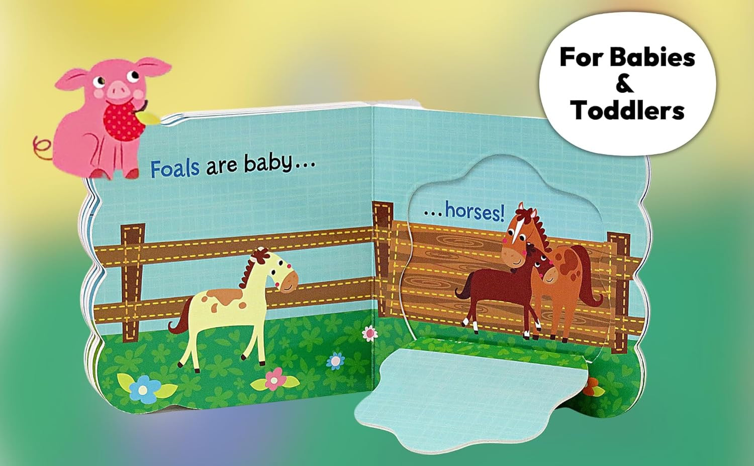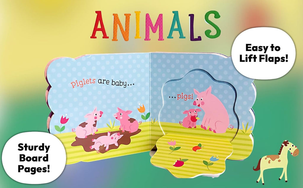 Introduce your baby or toddler to animals and their babies, including cats, kittens, pigs, piglets, dogs, puppies, and more in this adorable lift-a-flap board book. Simple sentences reinforce future language structure while grasping and lifting the sturdy flaps helps develop fine motor skills. A perfect first book!