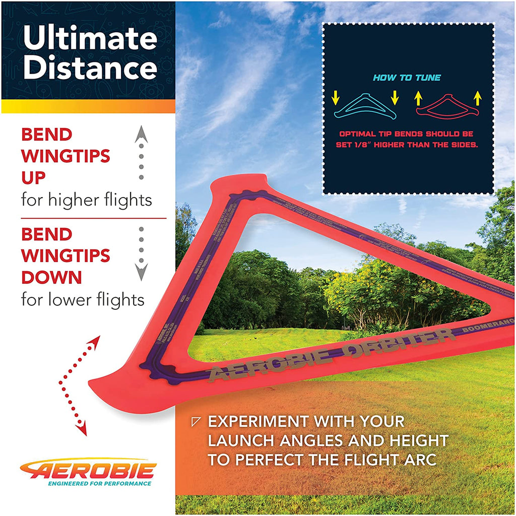 • ULTIMATE DISTANCE: Gently bend the boomerang's soft rubber wingtips up for higher flights and bend the wingtips down for lower flights; Experiment with your launch angles and height to perfect the flight arc