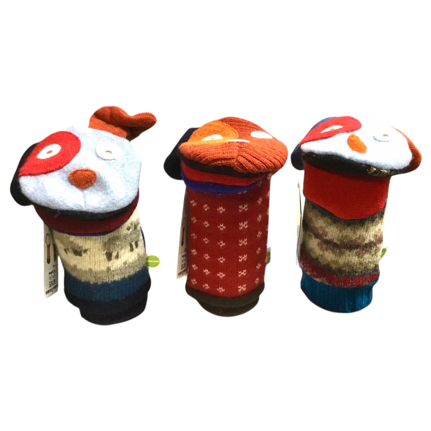 Our hand puppets are safe for children to play with. No two Cate and Levi Premium Reclaimed Wool Puppets will ever be the same. Each one is made from reclaimed wool whose colors and textures are individually selected. Not only is this process environmentally responsible, but it ensures that each animal is truly a one of a kind creation never to be duplicated.