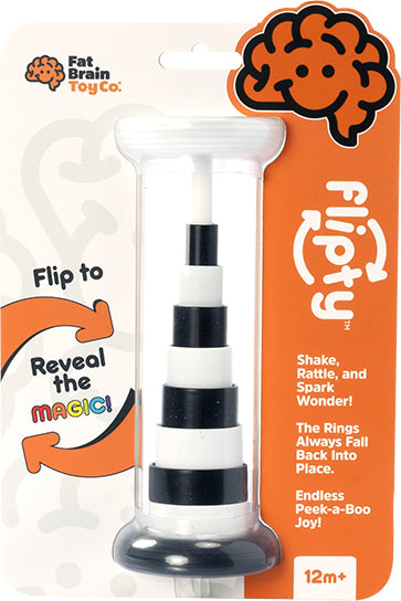 Flip it one way and the rings form a black-and-white stack. Flip it the other way, and it magically transforms into a rainbow! Plus, it's easy for little hands to grasp, it rattles beautifully, and the rings always fall back into place. Shake, rattle, and spark a new sense of wonder with Flipty!