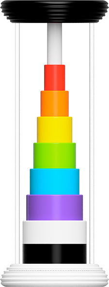 - Sensory toy with a stack of rings inside that flip from black-and-white to rainbow