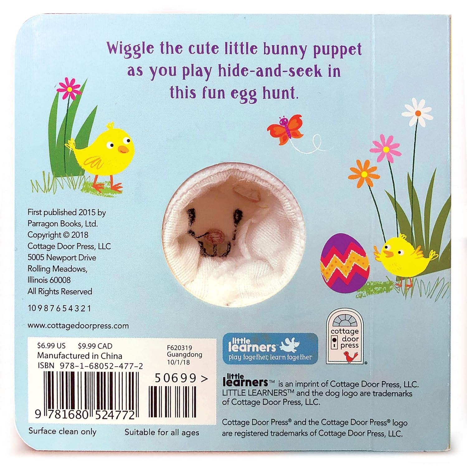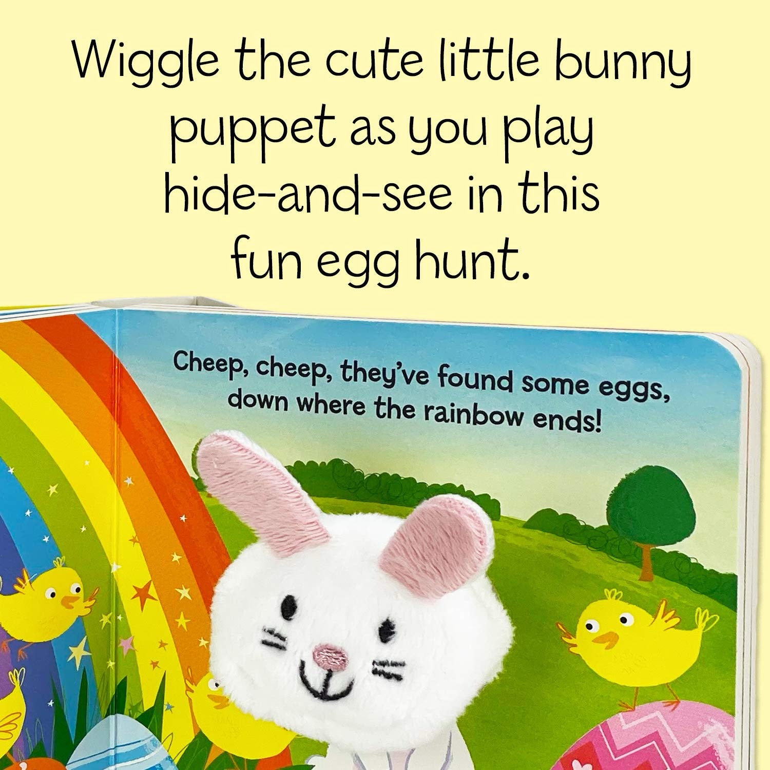 Look no further than Hippity, Hoppity, Little Bunny for an adorable nursery rhyme book. Follow the little bunny rabbit and its adorable bird friends in this finger puppet book as they hunt for Easter eggs. Wiggle the puppet to make the bunny in the story come alive! Boys and girls will love this board book surprise this holiday!