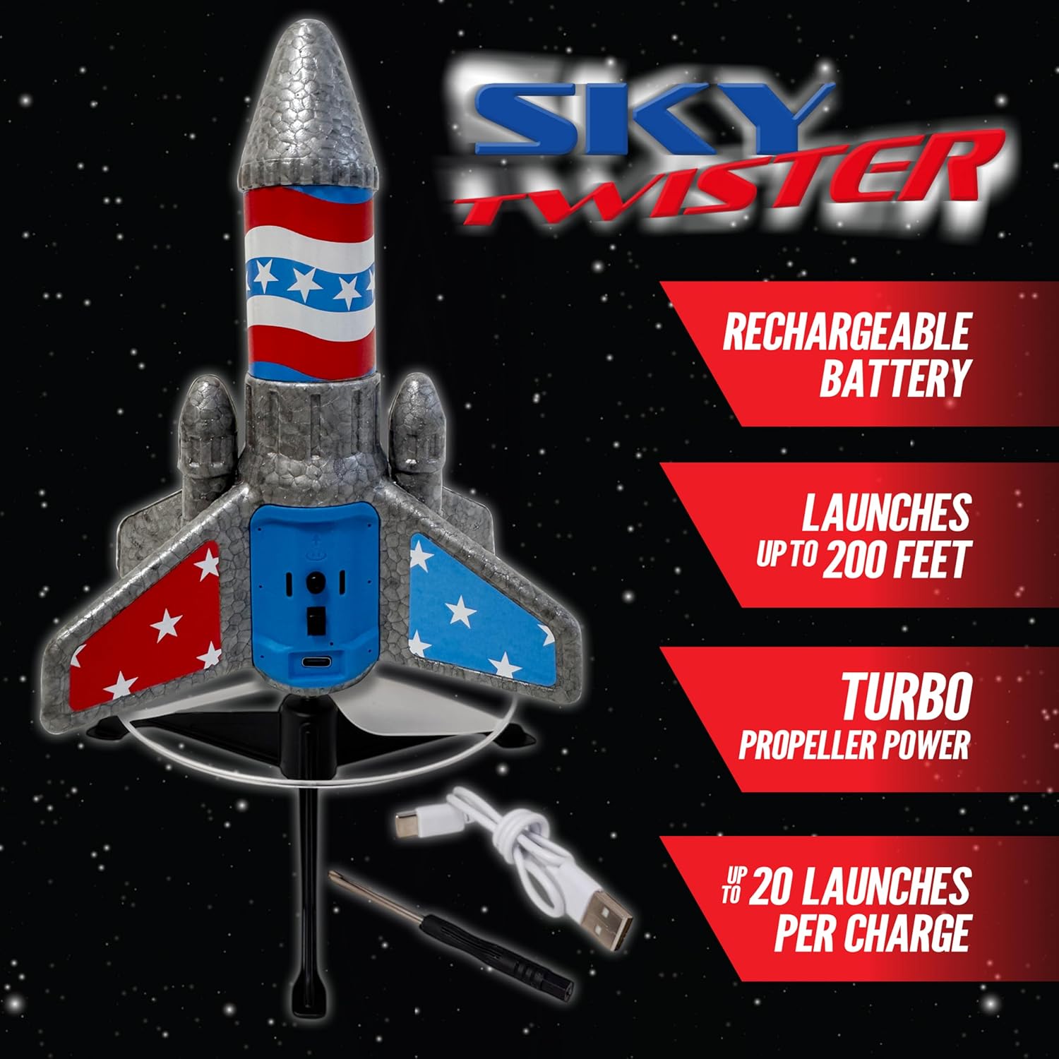 • Reaches up to 200 feet in the air with 2 launch modes: Regular (100') and Hyper (200')