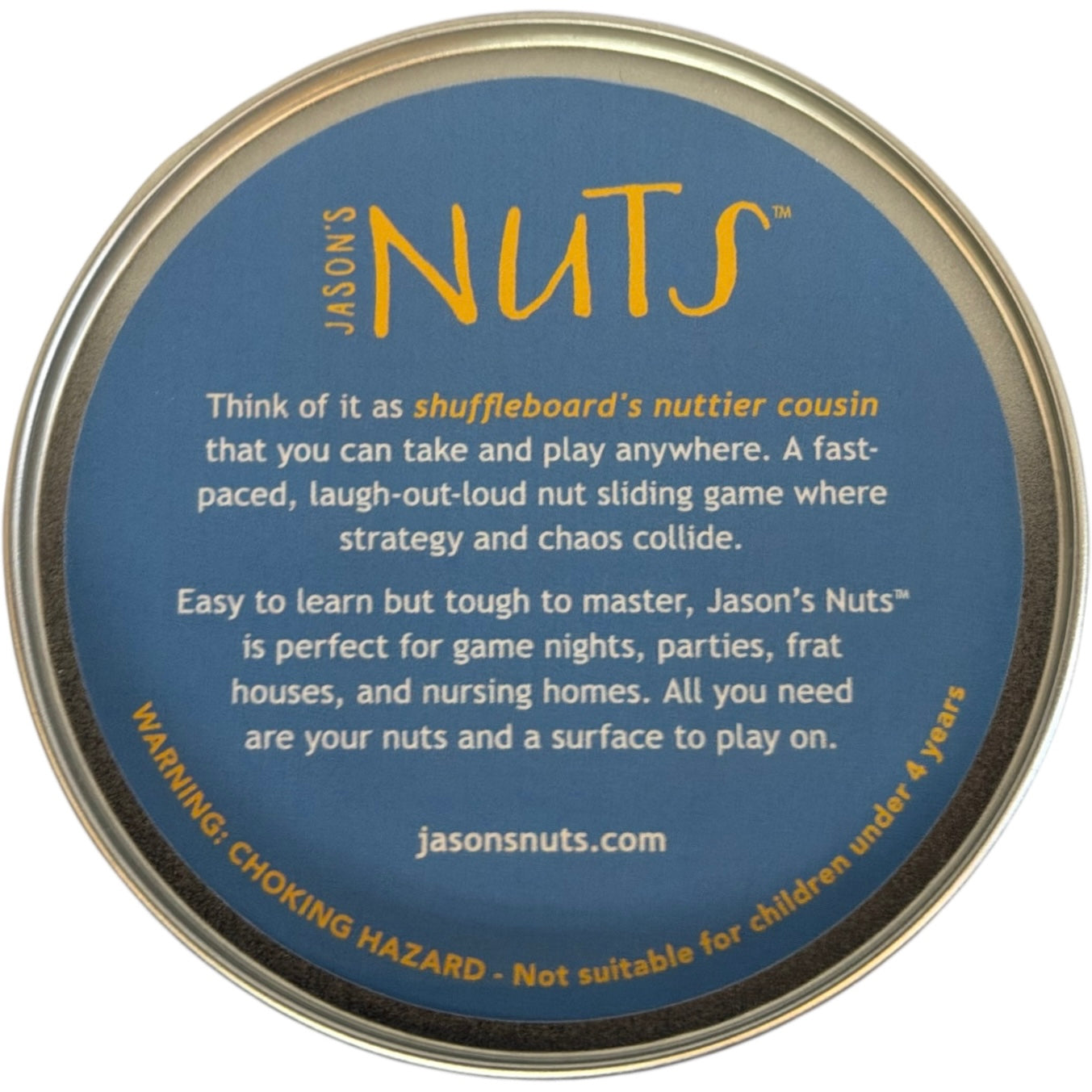 Slide your nut pieces across any flat surface, no board required. Land closest to the edge without going over. Take turns, knock opponents off, and rack up points.
