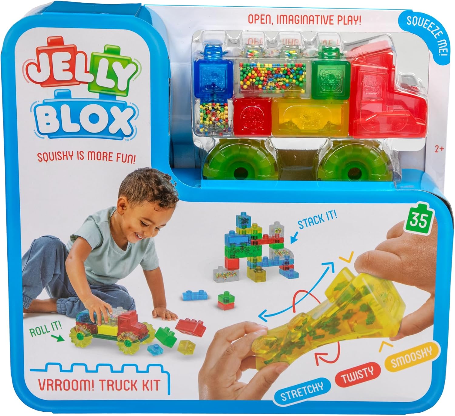 • COMPATIBILITY: Jelly Blox Vroom! Truck Kit includes 35 colorful blocks to construct a rolling truck that will bring your child's imagination to life, and it's compatible with all other Jelly Blox Kits for expanded play and creativity