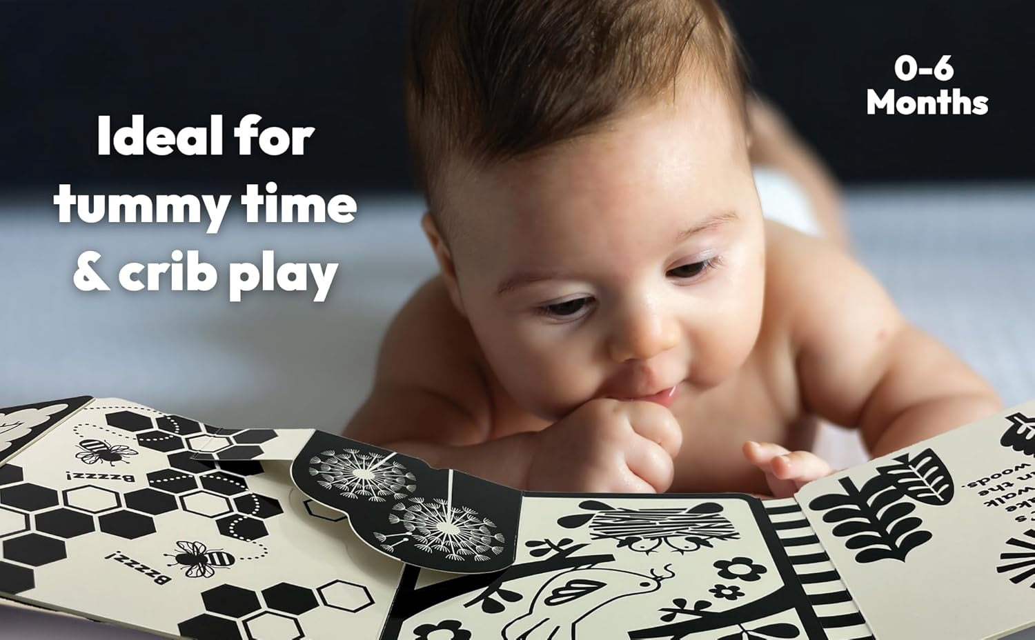 - High-Contrast Illustrations: Captivating black & white design aids in visual and sensory development in infants, encouraging focus, tracking, and interaction.