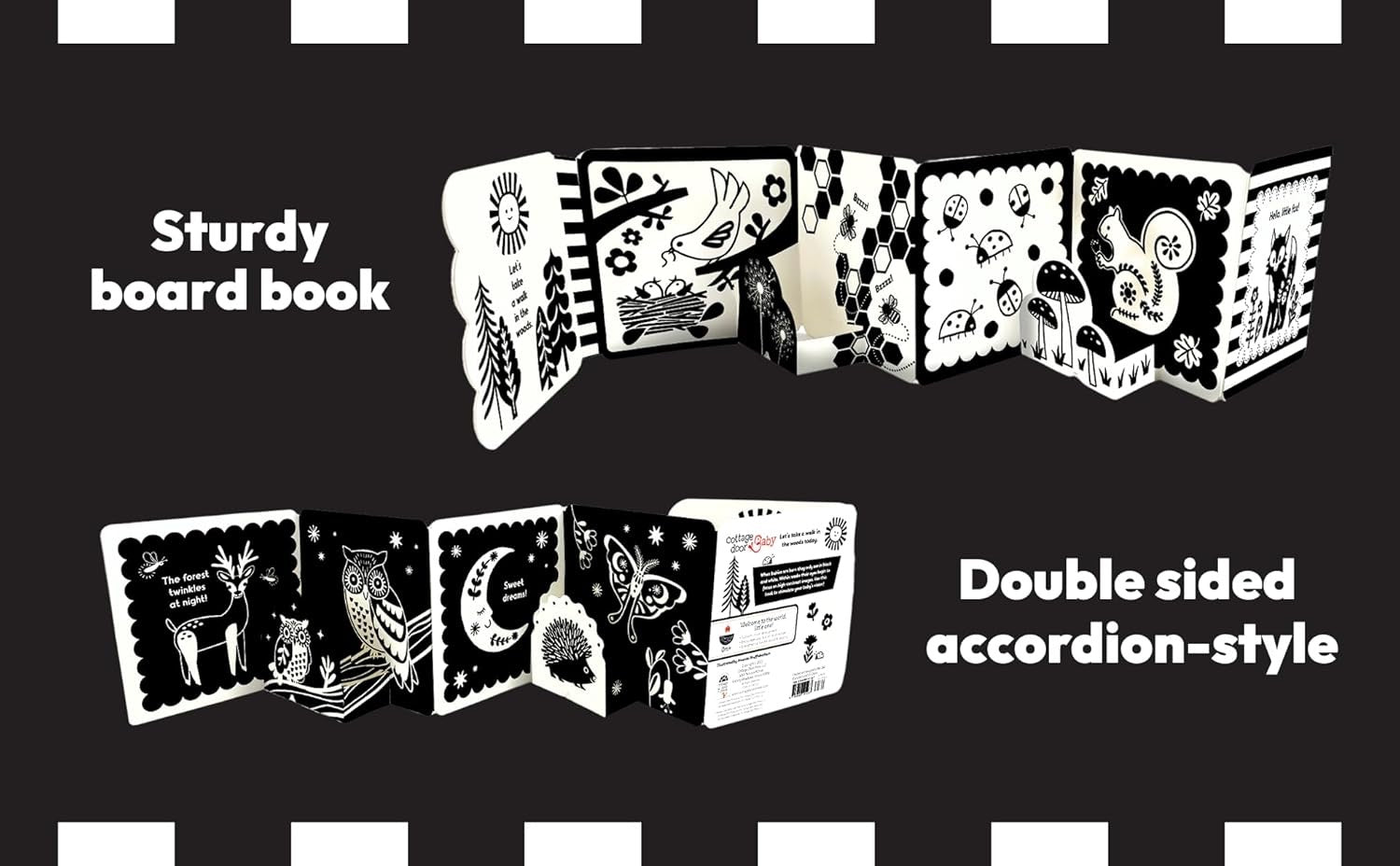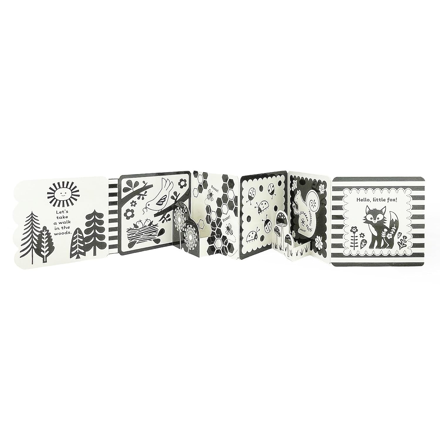 - Accordion Style: Unique fold-out format provides a continuous, immersive experience, ideal for tummy time or crib play.