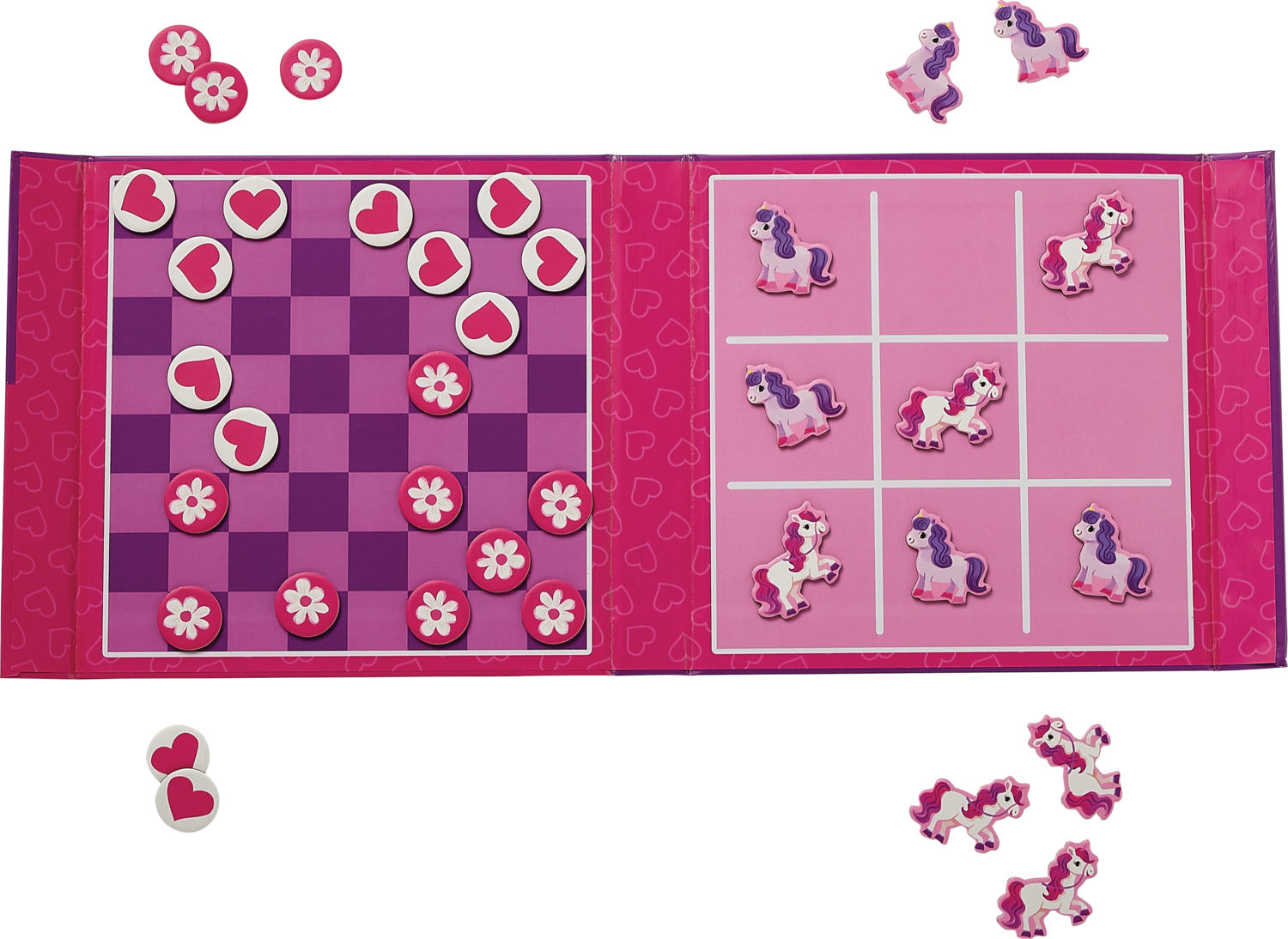 Double the fun with this portable magnetic game set featuring adorable unicorn characters! Perfect for road trips, restaurants, or quiet time at home, this compact game board offers two classic games that kids love. The magnetic pieces stay securely in place, making it ideal for play anywhere.