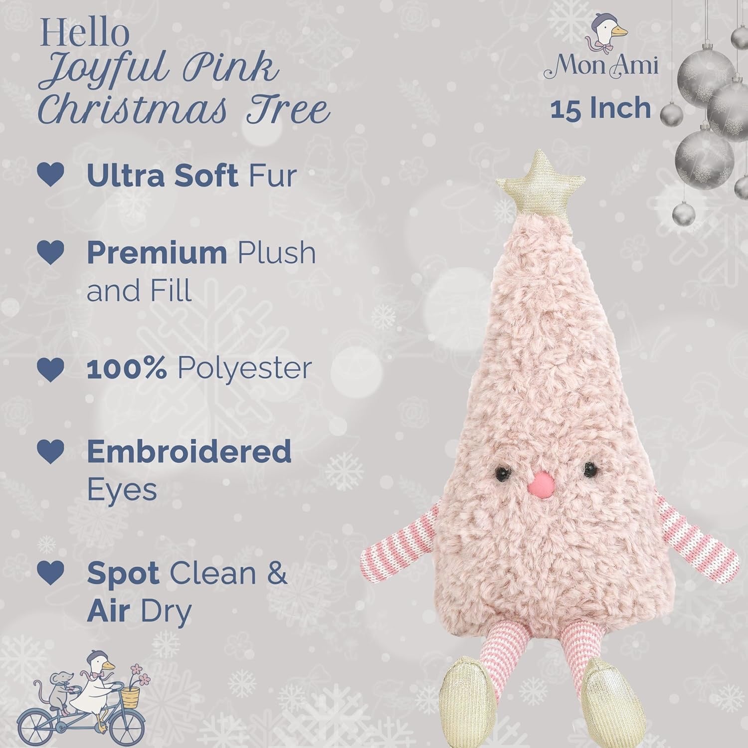 • ADORABLE CHRISTMAS PLUSH TOY - What’s better than a Christmas tree? Mon Ami’s Joyful Pink Tree Plush Toy. Playfully designed with pink-and-white striped arms and legs, a gold star and cute button nose, this Christmas plush toy is packed with personality. And destined to be a festive favorite. Featuring a generous 15-inch length and cuddle-ready body, our charming Christmas plush toy is sure to be a constant companion around the holidays.