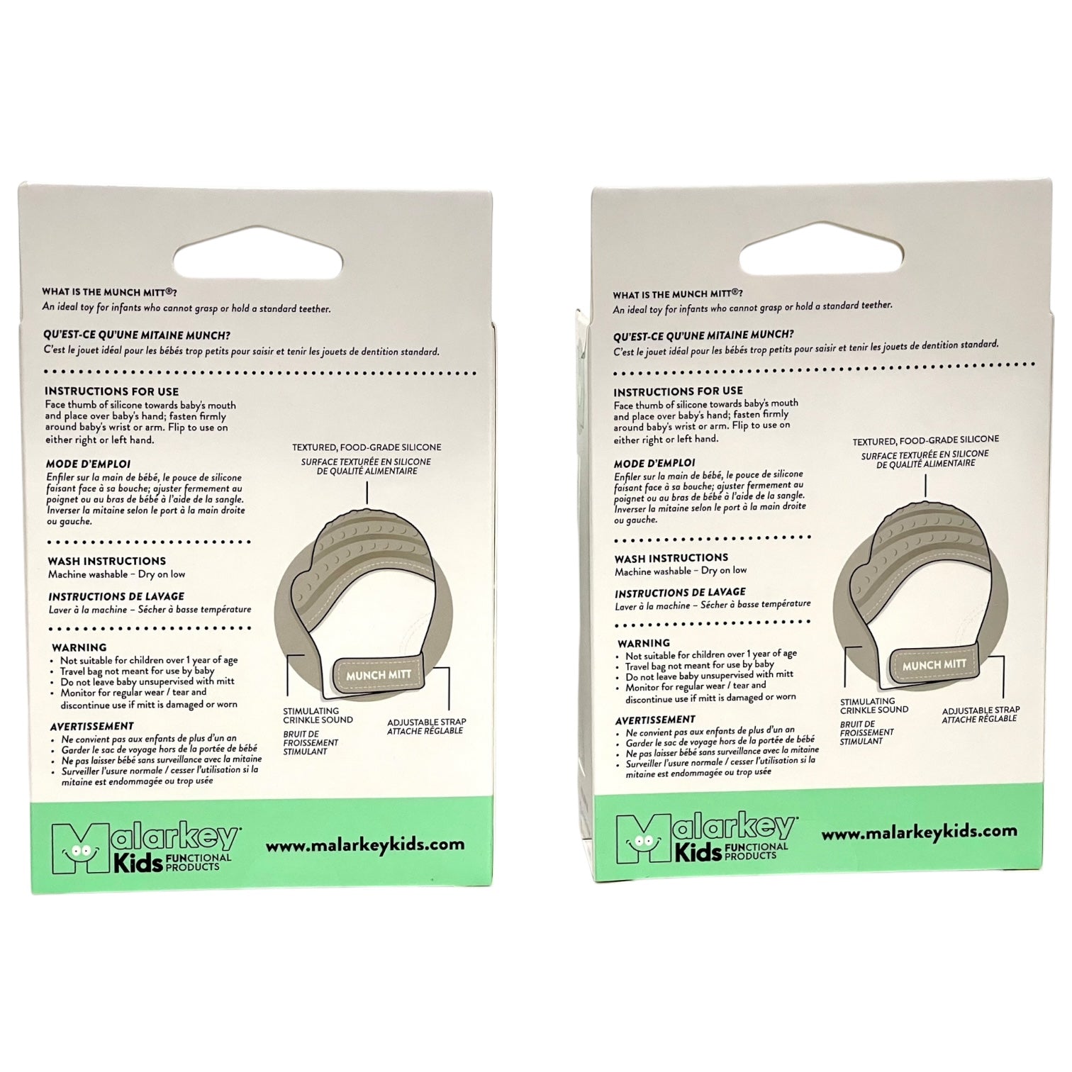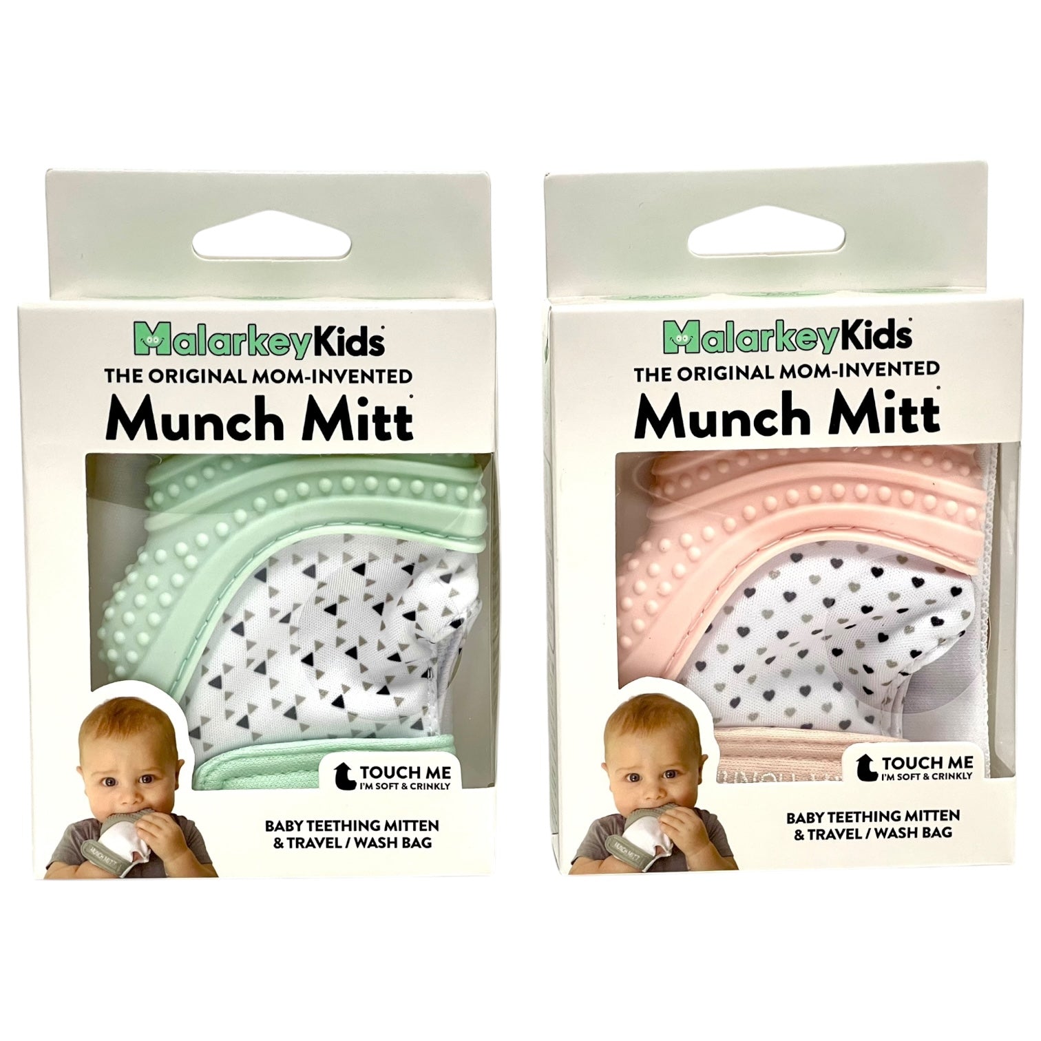 The Munch Mitt is the original, mom-created teething mitten that babies love. A ‘handy’ solution for infants of all ages and sizes, the Munch Mitt provides relief from teething pain in a safe, easy-to-clean product that goes wherever they do. Suggested age range 3-7 months.