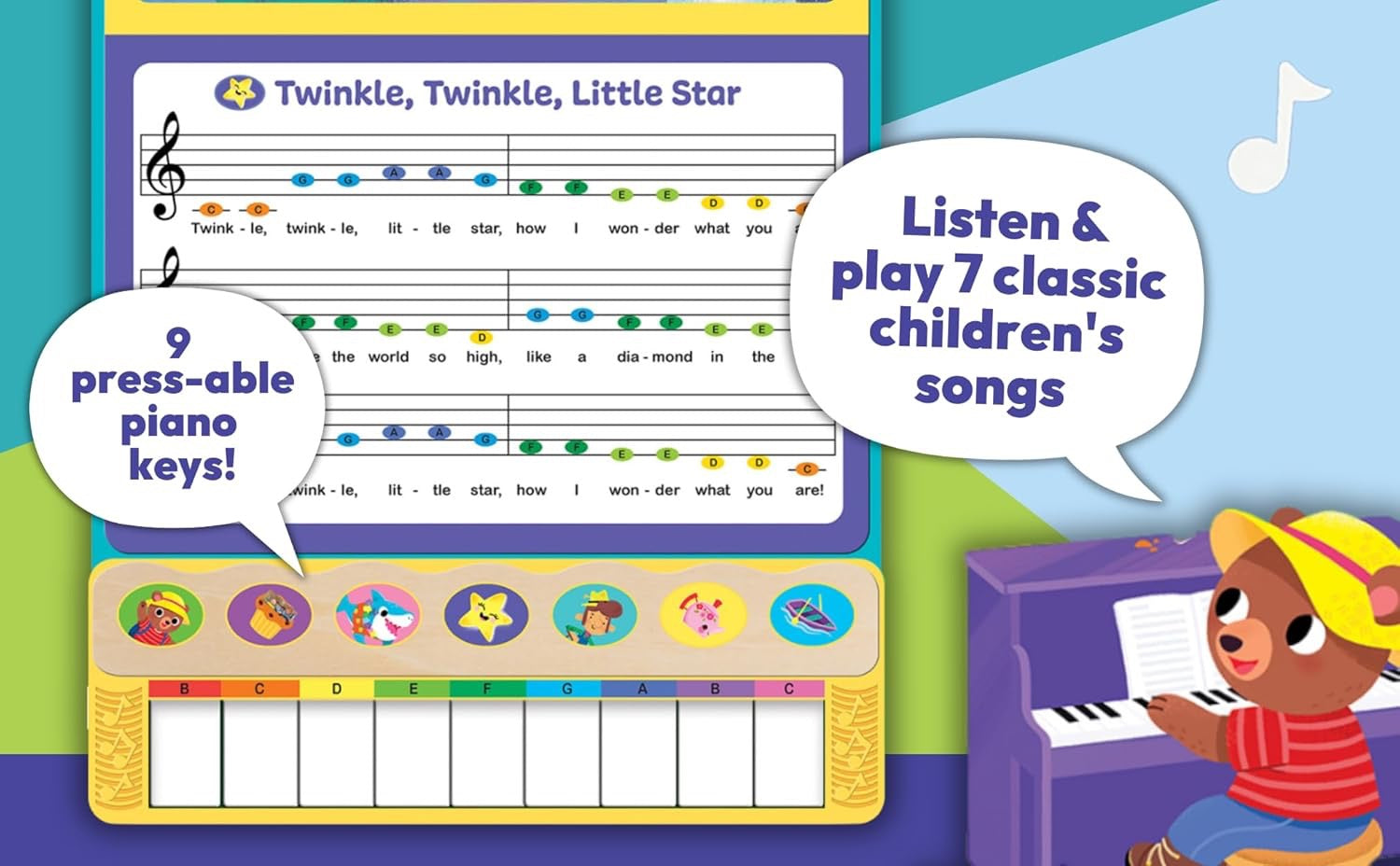 - Listen to seven classic children's songs then play them on the piano! Play-along with the notes for each song on nine press-ablepiano keys!