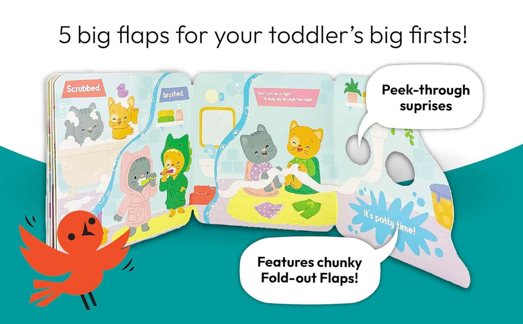 - 5 big flaps for your toddler’s big firsts! A growing up book designed to explore early learning and social emotionalconcepts.