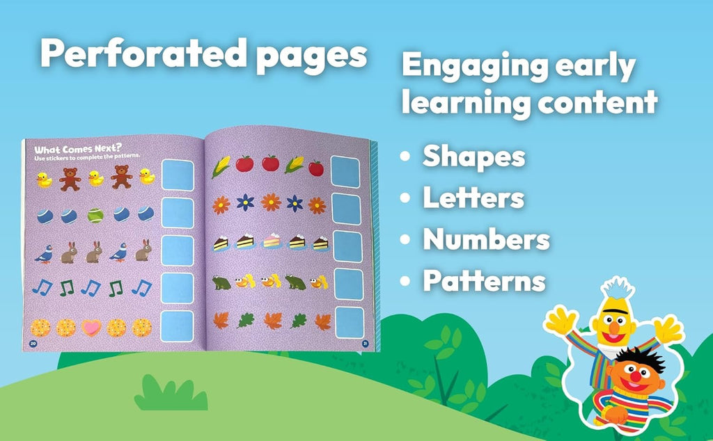 Bring home the learning fun with your child’s favorite Sesame Street characters! This Sesame Street Sticker Activity Bookis packed with over300 easy-to-remove stickers that promote early learning through play. Toddlers and preschoolers will love exploring basic concepts like colors, numbers, letters, shapes, and more—all alongside beloved furry friends like Elmo, Cookie Monster, and Big Bird.