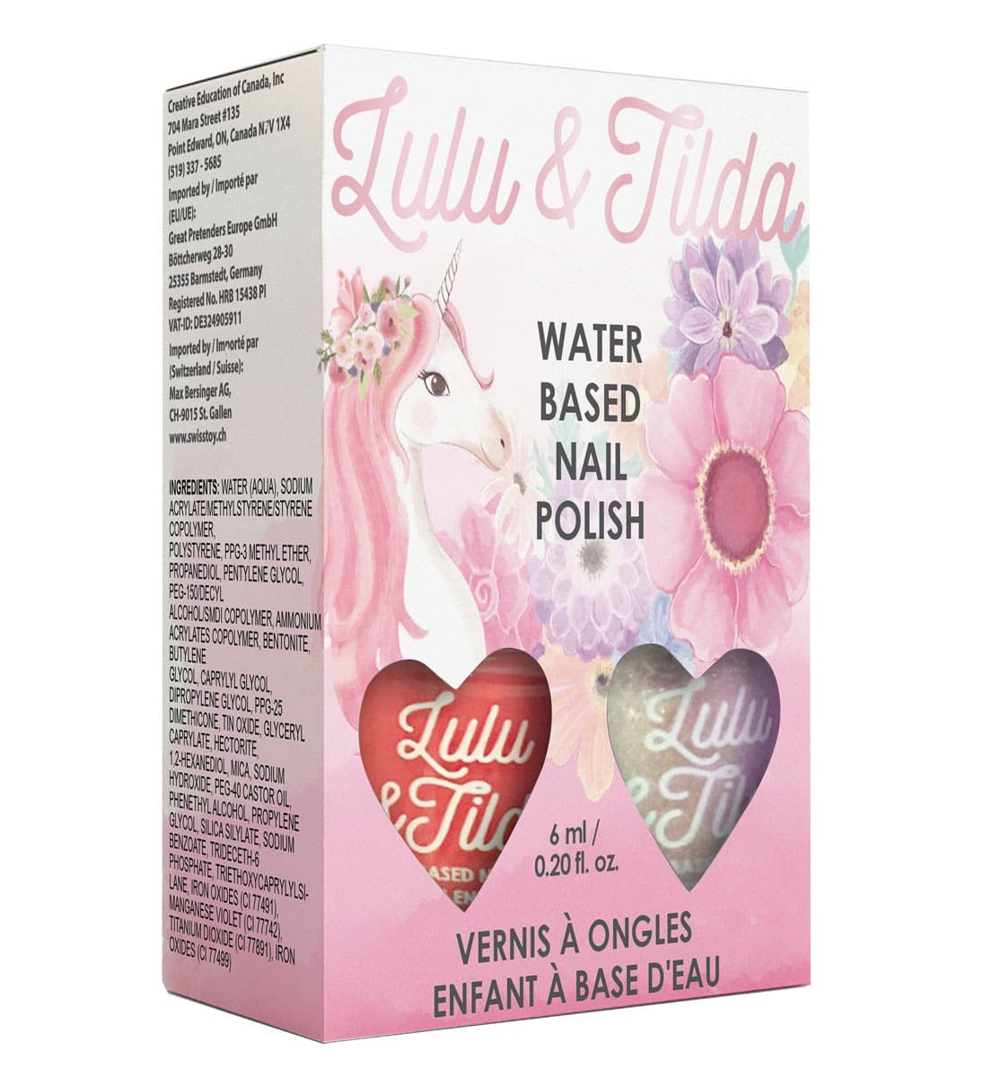 A set of full-coverage, fast-drying nail polishes. They are made with non-toxic materials and are completely vegan and cruelty free. Even better: They are odorless! This set of nail polish comes with two pink polishes: “Pinking It Over” is bright pink and “I Dream Of Unicorns” is a lighter pink. ~ Kathryn