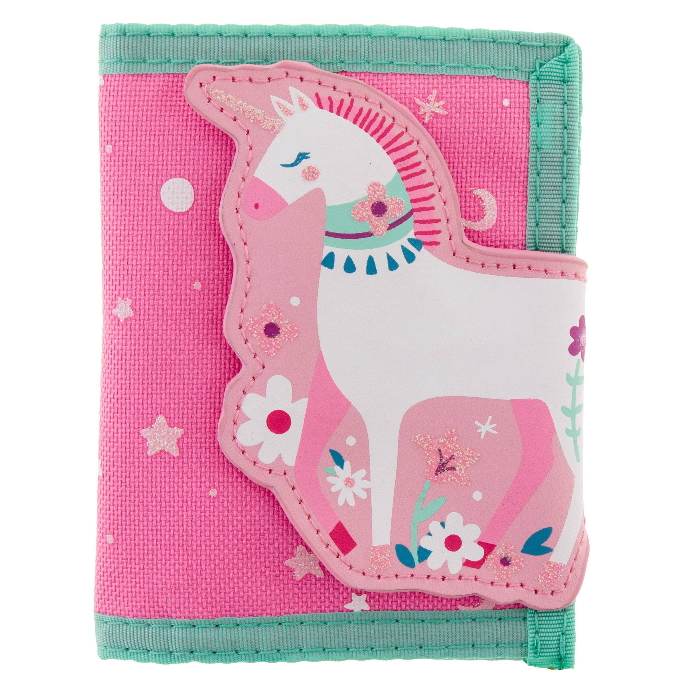 Give your child somewhere cool to stash their cash with a Stephen Joseph Wallet. They’ll love getting out the eye-catching designs when they hit the mall. And all the pockets inside are great for store cards and photos. Just make sure they don’t go on a spending spree – you can see how easy it would be to get this fab wallet out all the time. * Tri-fold wallet with appliquéd designs * Coin pocket with zipper plus one mesh pocket * Folded approx. 3.5” x 4.5” (8.89cm x 11.43cm) * 600D polyester and nylon * Wipe clean with damp cloth.